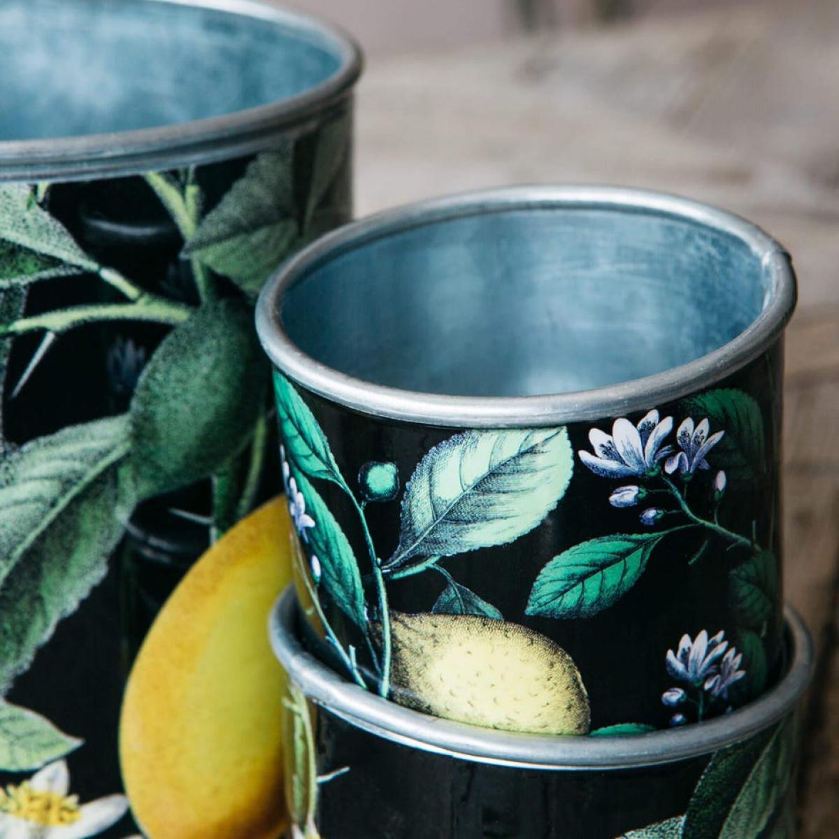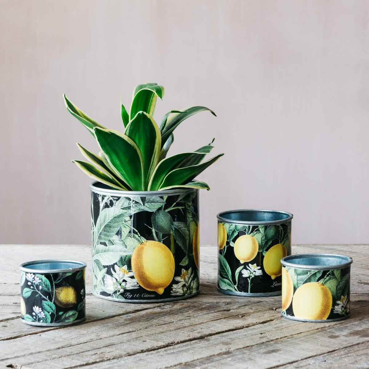 Add a sunny burst of colour to your plant collection with this set of four planters in an array of sizes that feature a vintage-inspired lemon design.