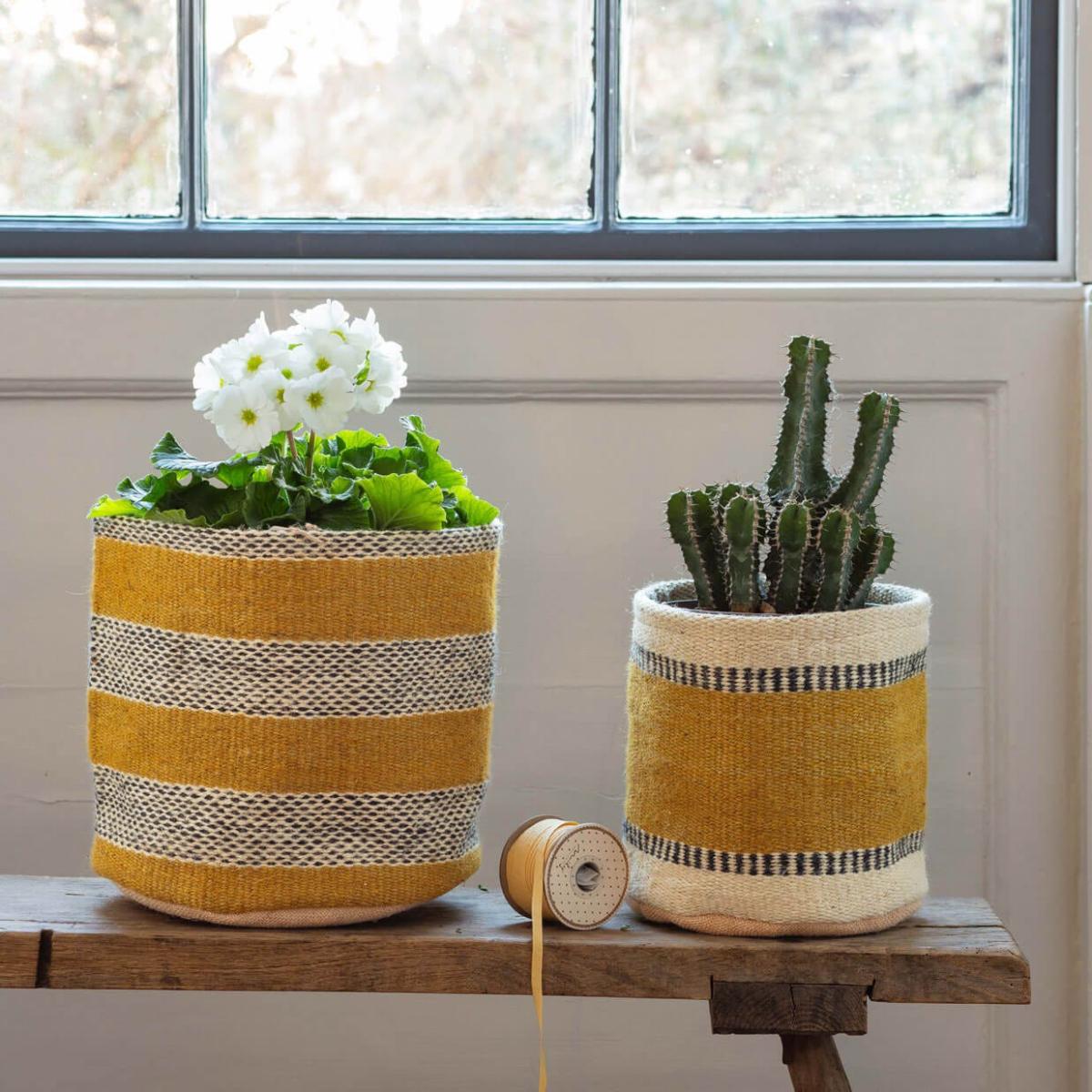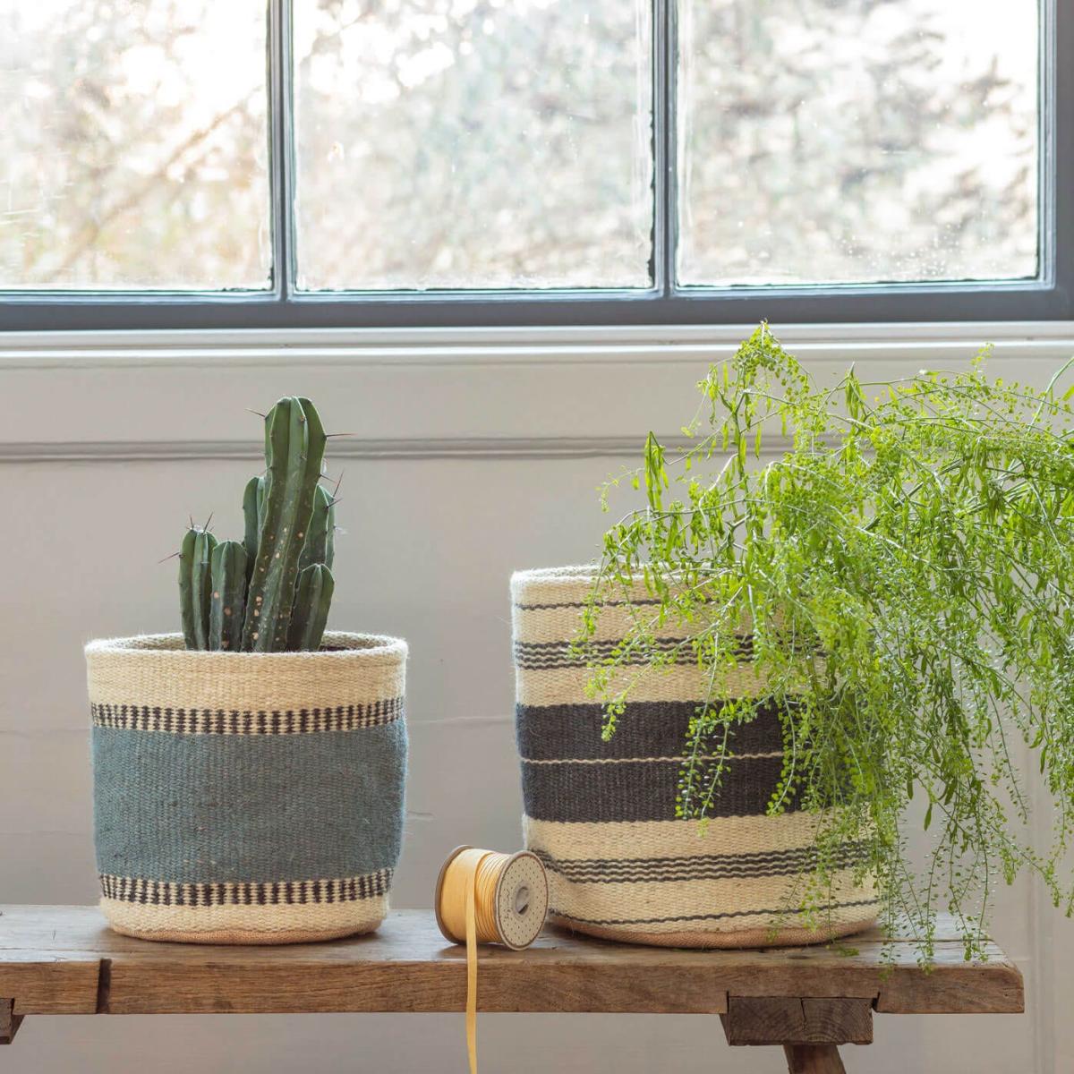 Handcrafted from woven jute, these set of two jute bins will add a cheerful pop of colour to your living space. Handy storage for around the home to keep small bits and bobs safe and together or as stylish covers for plant pots. Available in three bold colour combinations.