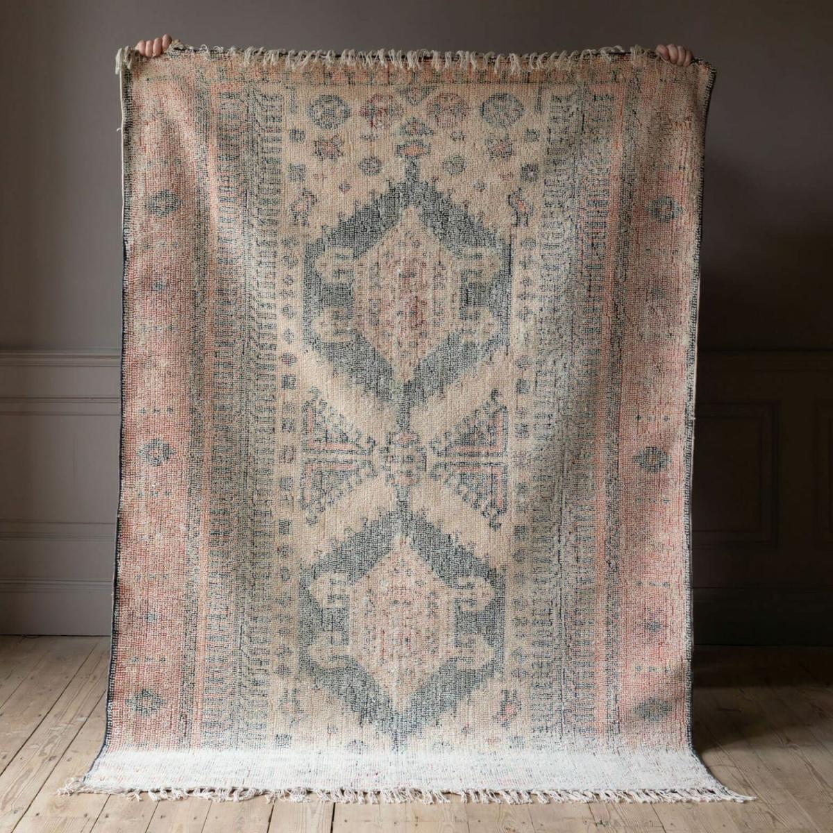 Exclusive to Graham and Green and skillfully handwoven from a blend of cotton and wool. These Sikara rugs have been cleverly designed with an aged feel, with tufts of white being woven into the design to give it that faded antique look. ANX1010:W140 x L200cm. ANX1011:W150 x L240cm. Handcrafted using a blend of 70% wool and 30% cotton. Exclusive to Graham and Green. Spot clean only. This product is handmade so the exact colour and finish may vary.