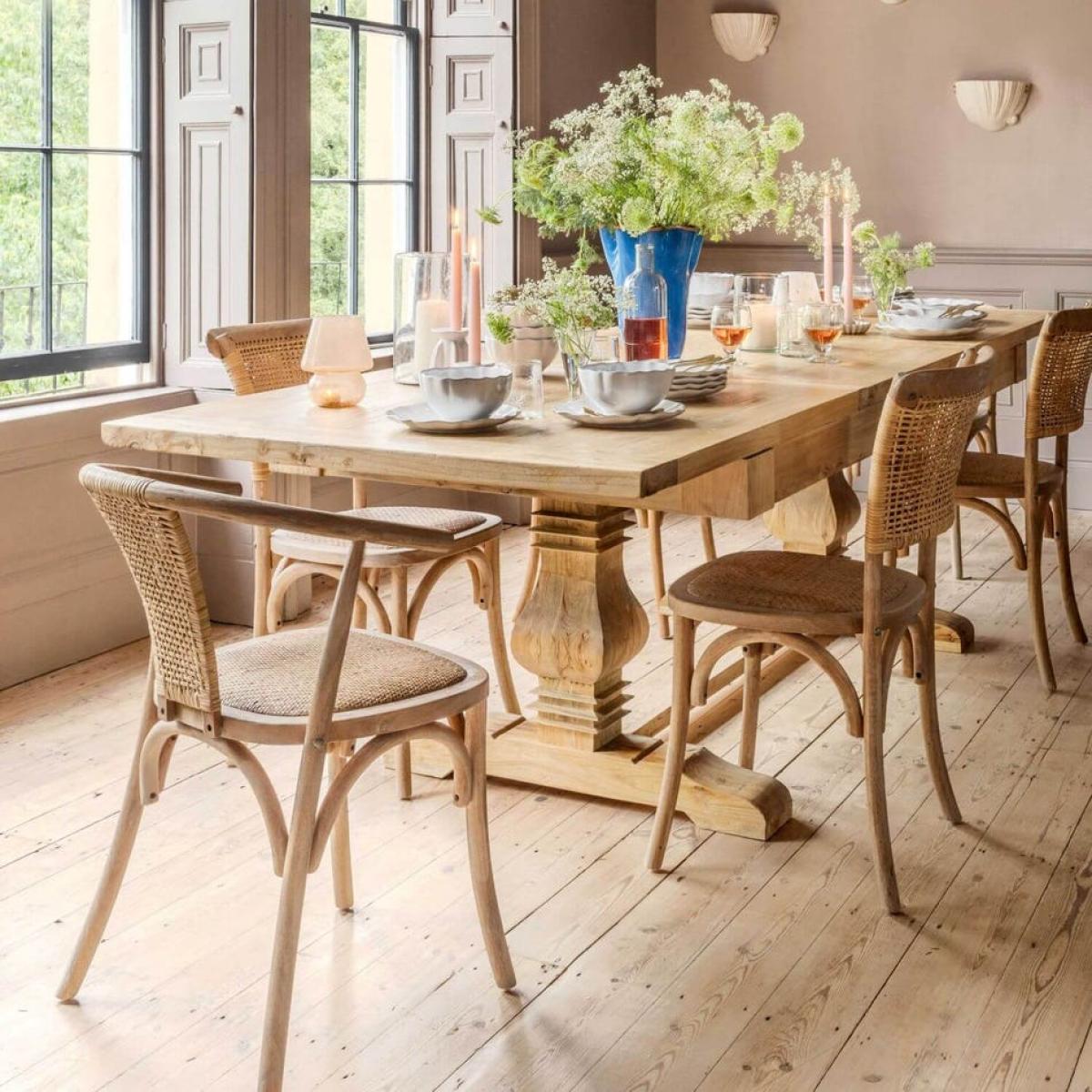 I love this one for its timeless appeal and versatility. Its reclaimed elm top gives it a lovely natural texture that works well in both rustic and modern interiors. The extendable feature makes it practical for accommodating guests or family gatherings without taking up extra space when not in use. It pairs beautifully with a mix of styles, from contemporary minimalist to farmhouse chic, and looks great styled with a combination of casual and elegant tableware. Practical tips include keeping the look relaxed with woven placemats and natural centrepieces, or dressing it up with statement accessories for more formal occasions. Overall, it’s a reliable piece that adds warmth and functionality to any dining space.