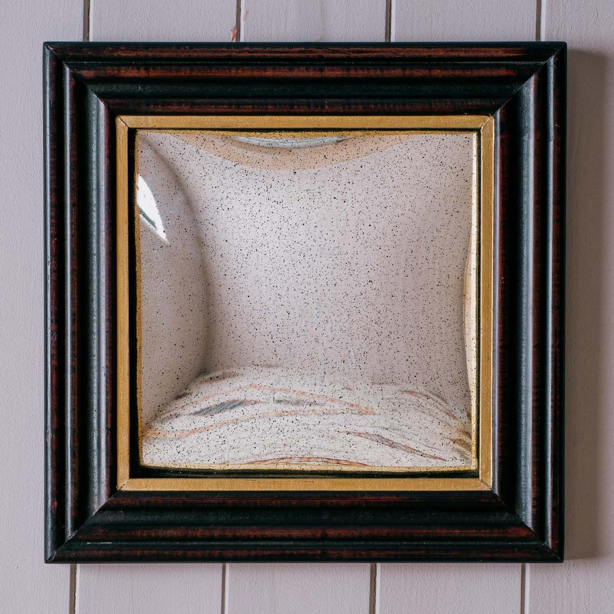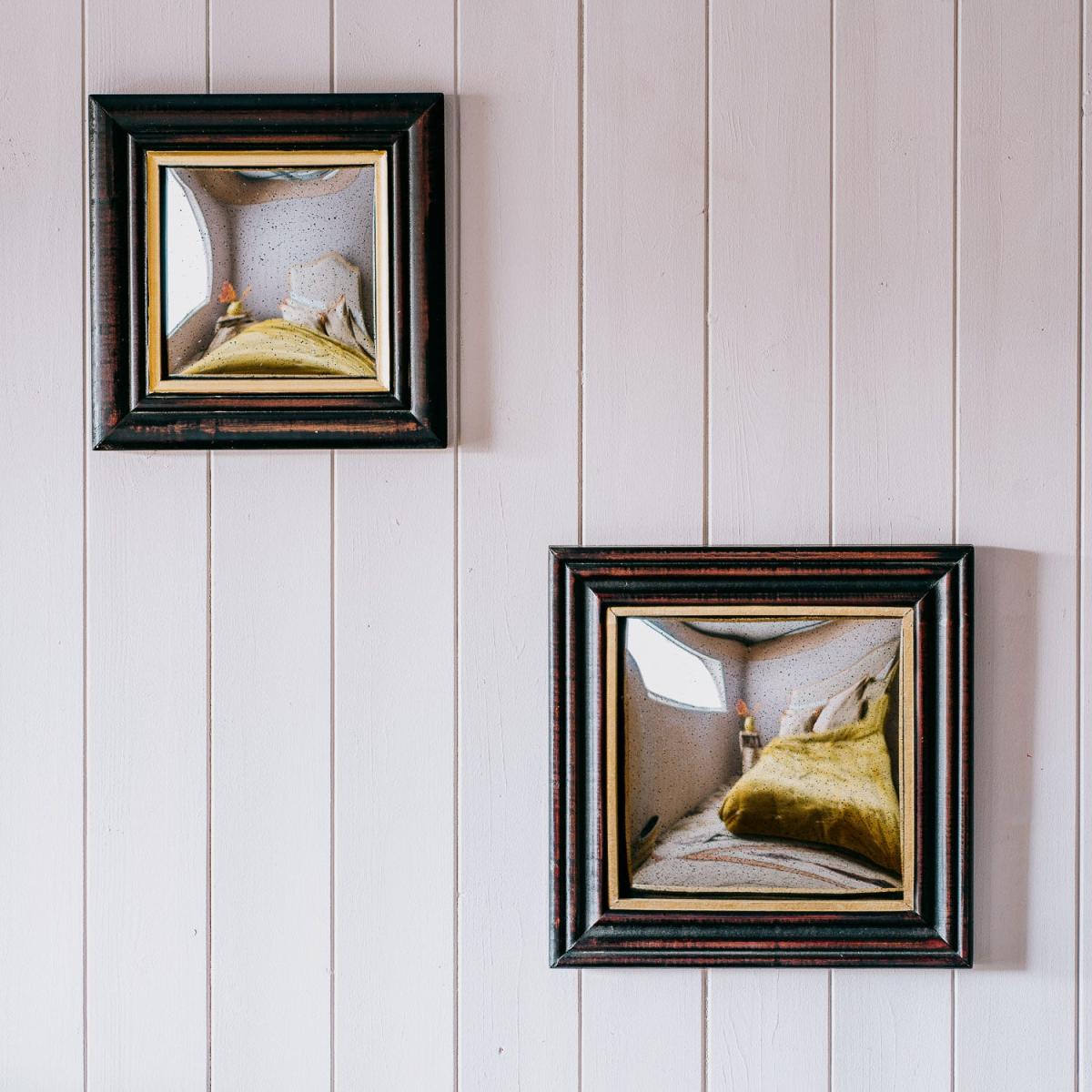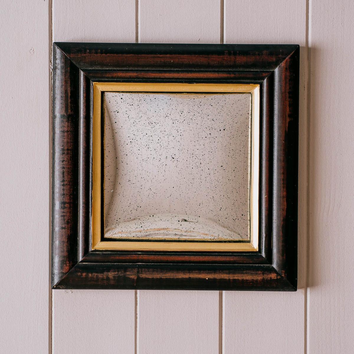 Blending traditional design with modern style, these square wall mirrors feature bulbous convex glass centres, framed by black ridged wood and highlighted with a fine gold line. Perfect for enhancing a gallery wall or creating a sense of extra light in an entryway or dining room.