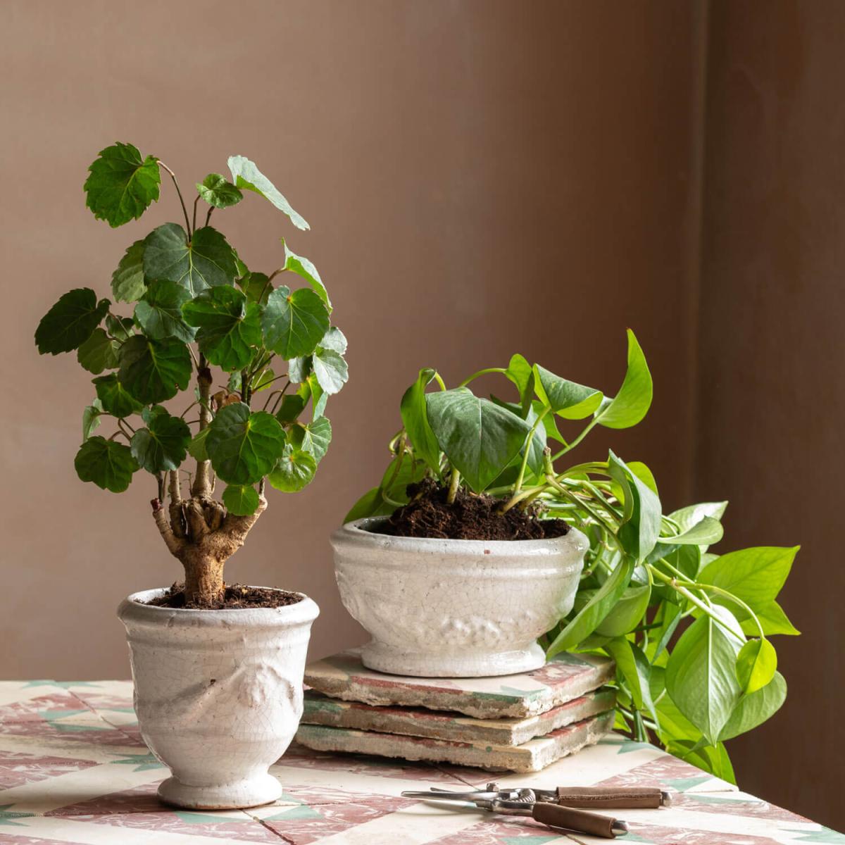 With a rustic, crackled surface in a traditional style, these ivory glazed plant pots are a delightful addition to your living space. Ideal for small house plants, the ivory colour beautifully complements the deep greens of a peace lily or snake plant. Tall (TQA1000): H27 x Diameter 14cm. Wide (TQA1001): H15 x Diameter 16cm. Made from ceramic. No drainage hole, so we recommend using for pre-potted plants. Not suitable for outdoors.