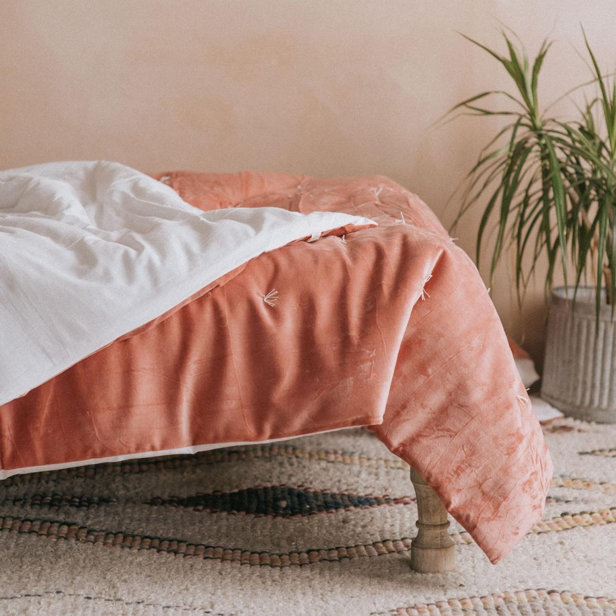 I love the velvet touch of this king-size quilt - it instantly elevates any bedroom with its lush texture and subtle Rose hue. It works particularly well in both modern and vintage-inspired interiors, adding warmth and a touch of luxury. To style it effectively, consider pairing it with neutral or muted tones for a calming feel, or add complementary cushions in soft fabrics and gentle hues for layered interest. For a more contemporary look, keep surrounding accessories minimalist, allowing the velvet to be the focal point. It’s a practical choice for those looking to create a cosy yet sophisticated bedroom environment.