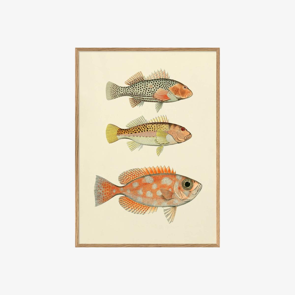 Inspired by the creatures of the deep, this print features three unimpressed fish, beautifully illustrated in a Victorian science book style with intricate detail and vintage colours. Printed on high-grade paper with archival-quality inks, it is finished with a solid oak frame. DHD1008:H40 x W30cm. DHD1009: H70 x W50cm. DHD1010:H100 x W70cm. Printed using archival-quality inks on high-grade paper. Framed in solid oak. Solid individually.