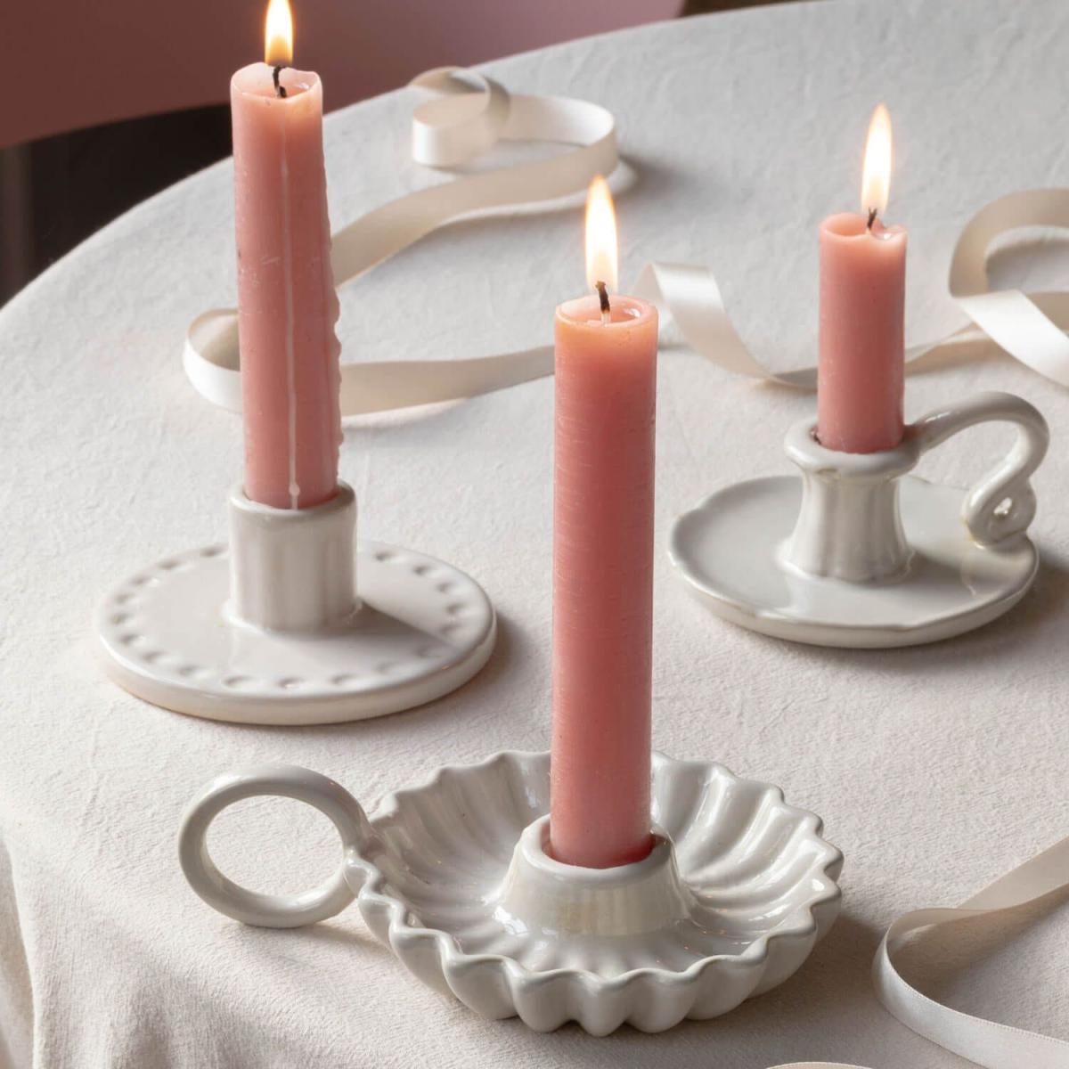 Add a touch of elegance to your home with these stoneware candle holders, finished in a reactive glaze for a subtle two-toned effect. Pair with tall white or beige dining candle to achieve a timeless, classic look.
