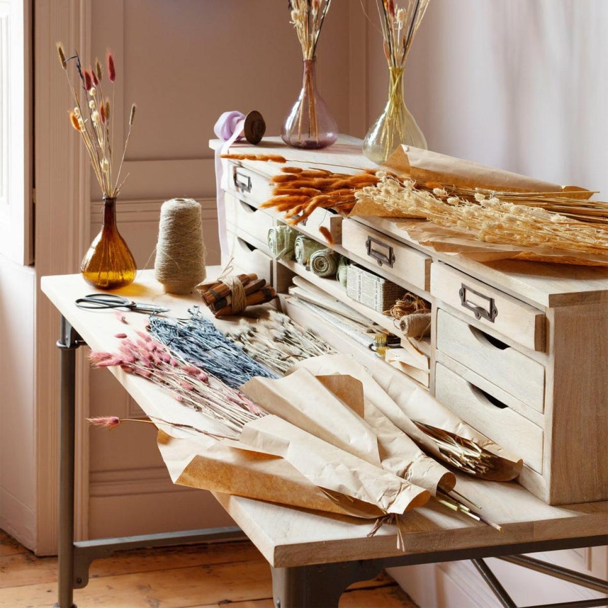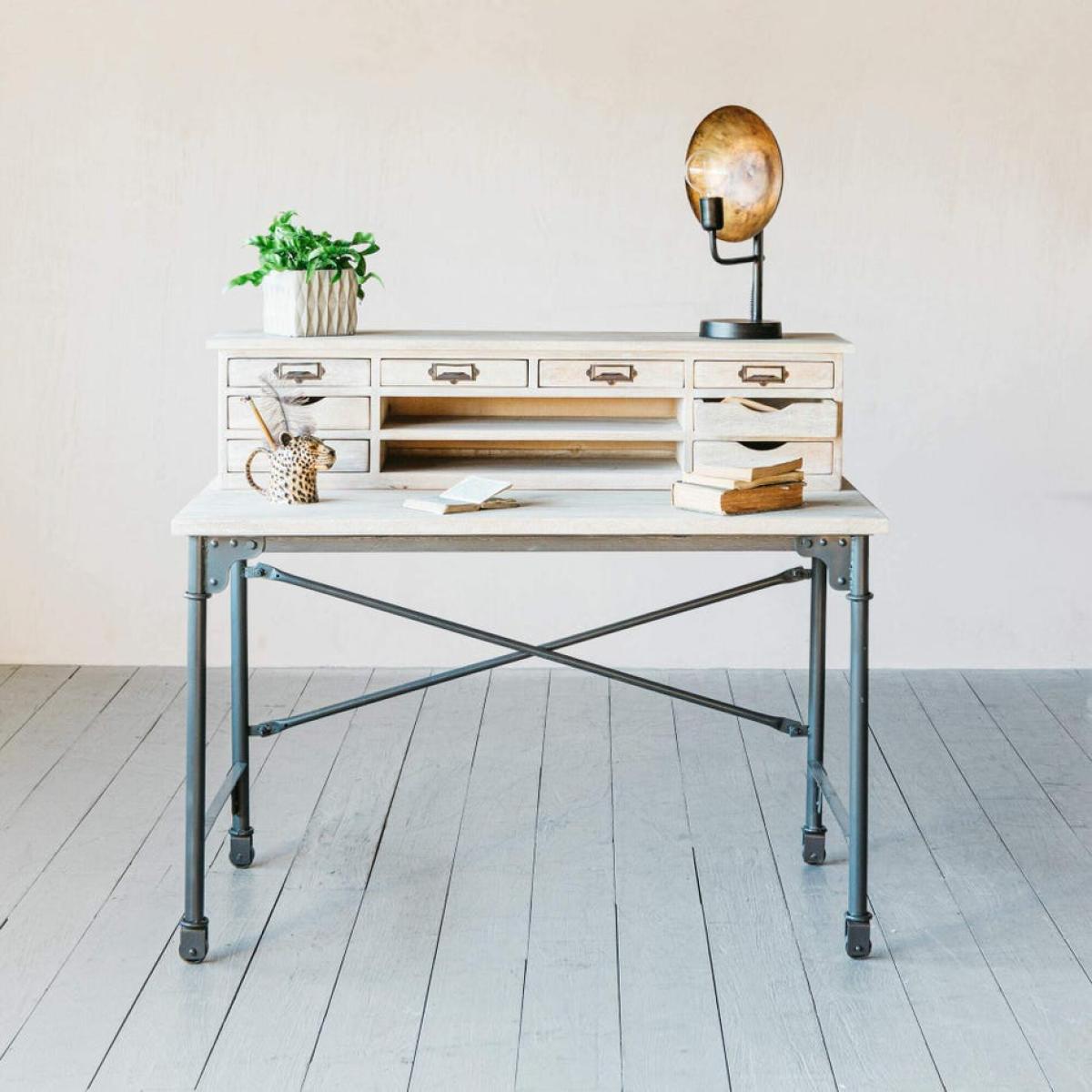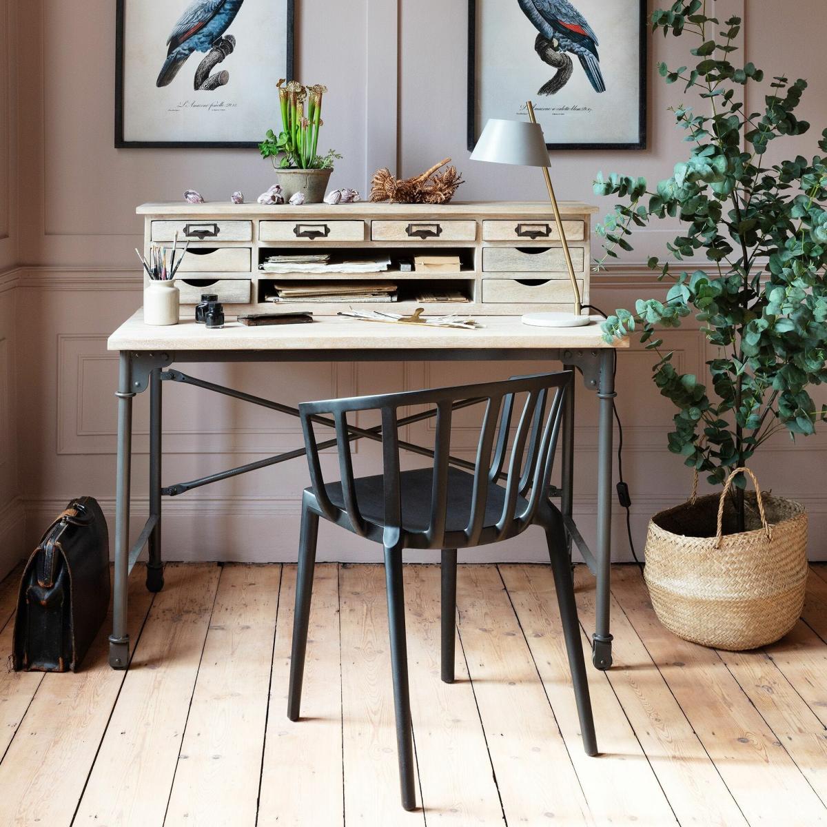 For those with a love of organisation, this postmaster-inspired desk offers plenty of filing space with eight drawers and two shelves to keep your desk space clutter free for busy minds and comes on wheels so you can move it if required.