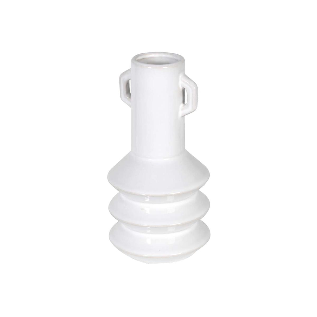 Create architectural flower displays with this unusually shaped white funnel vase.