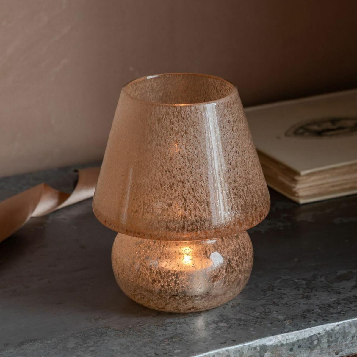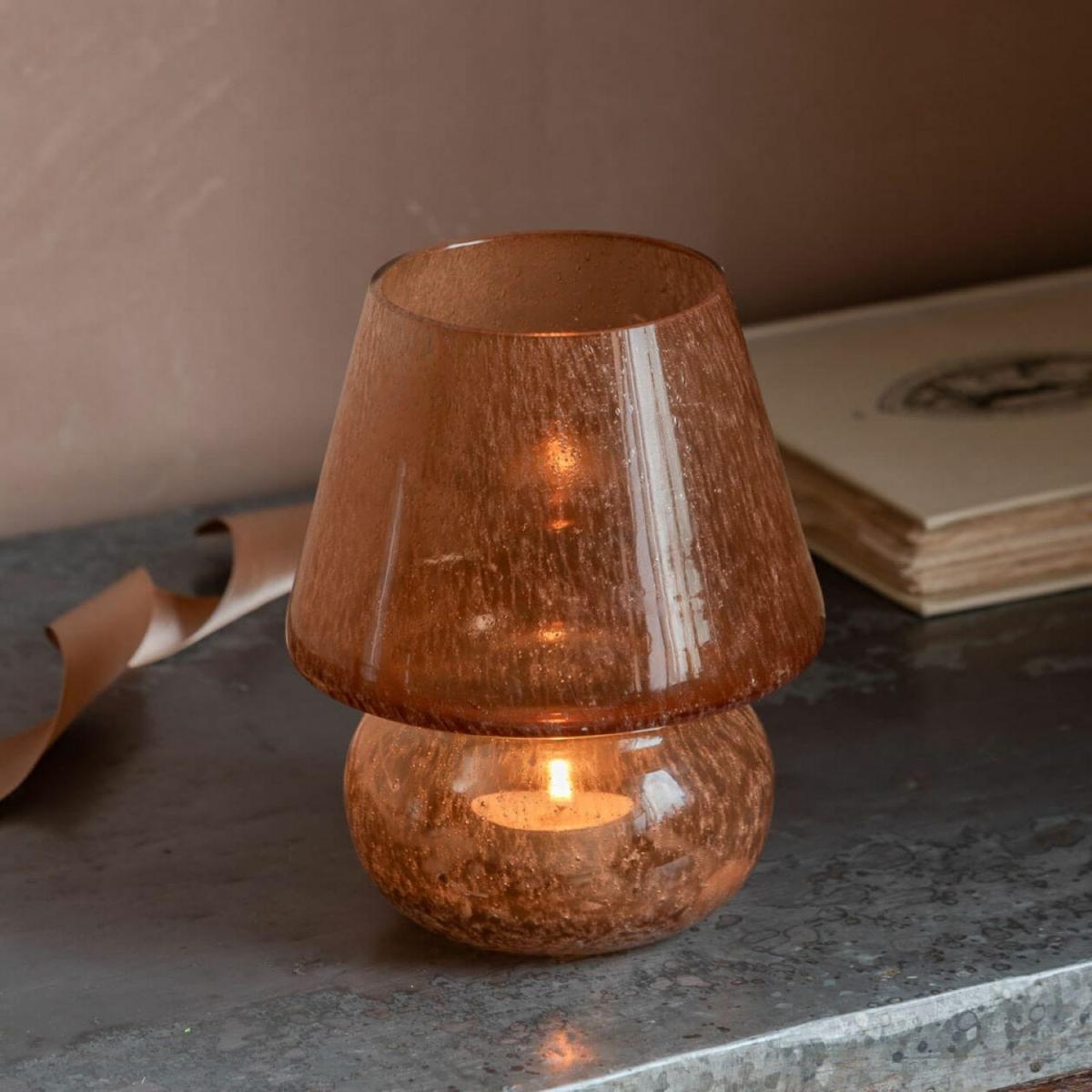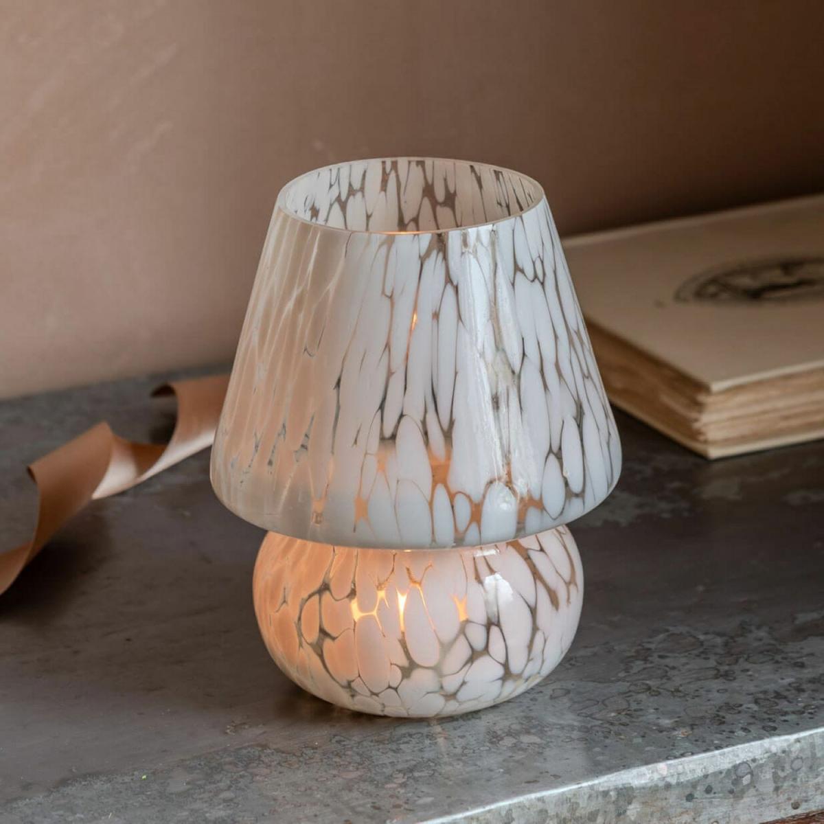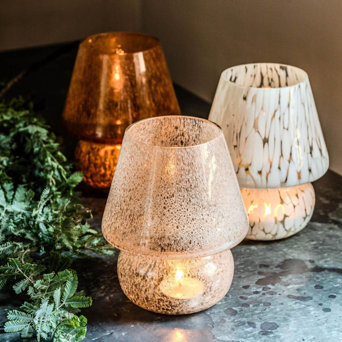 Perfect for adding a cosy, warm glow to your home, these glass mushroom tealight holders feature spotty patterns created by adding flecks of glass during the blowing process to give them a unique pattern and subtle texture.