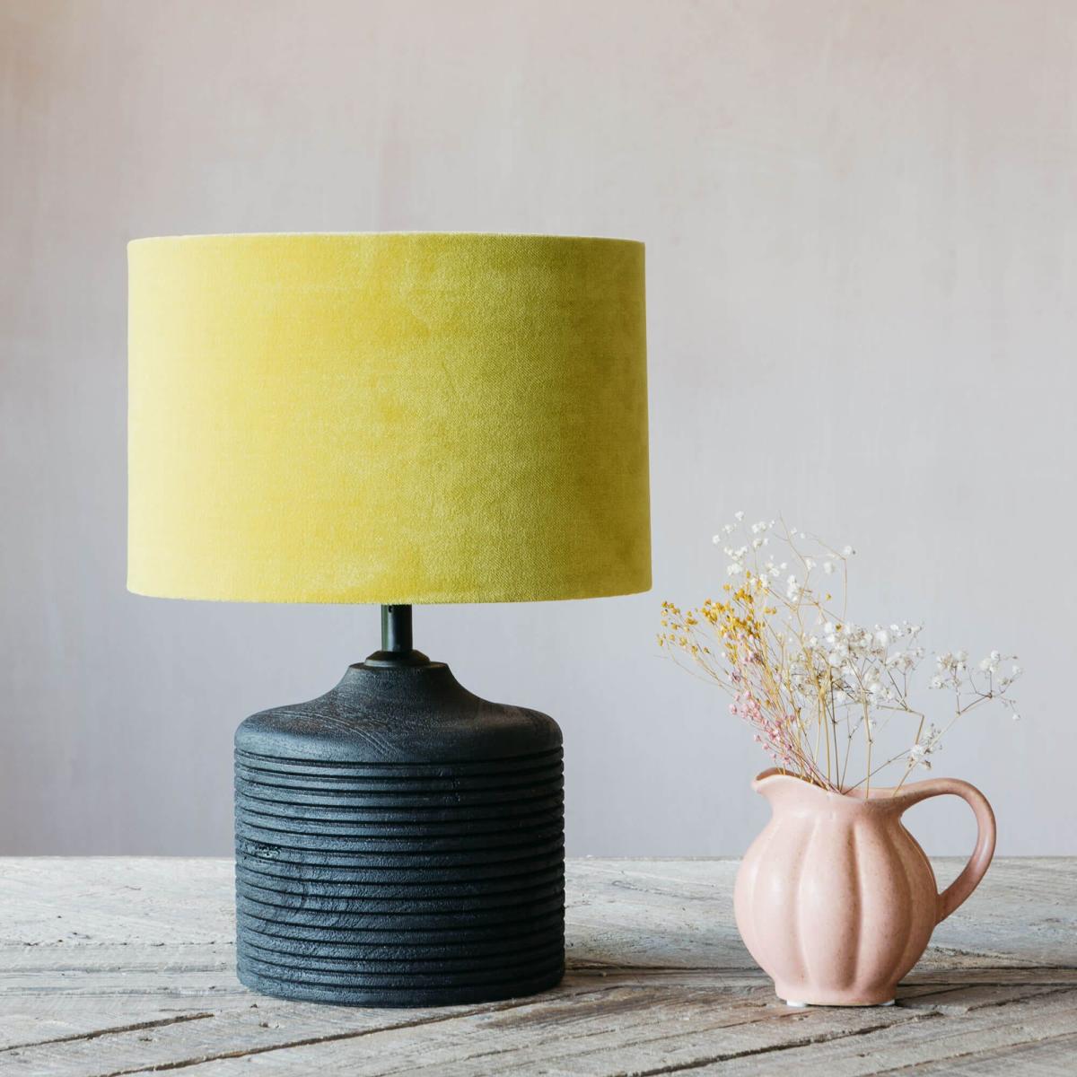 A sleek short table lamp with a ribbed design, top with a lampshade in a brightly coloured shade to complement the minimalist yet textural look. H17 x Diameter 16cm. Shown with our 10" Wattle Velvet Lamp Shade (not included).Requires 1 x E27 bulb (not included).Fabric cord: L170cm. The exact colour and finish will vary.
