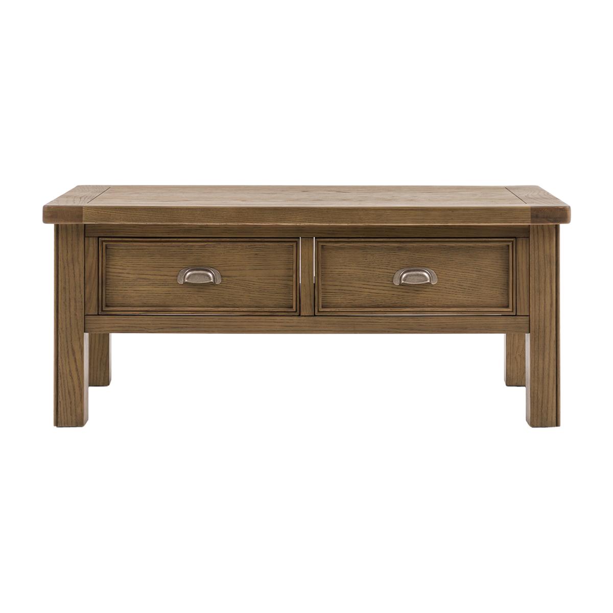 Rooted in rustic charm and built for modern living, the Grain Coffee Table blends natural texture with everyday function. Crafted from oak and pine wood with visible grain detailing, this sturdy table anchors your living space with warmth and character. Featuring two spacious drawers with classic metal handles, it's ideal for keeping your home clutter free.