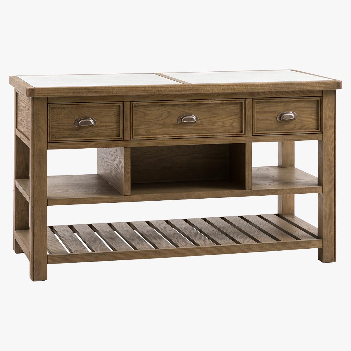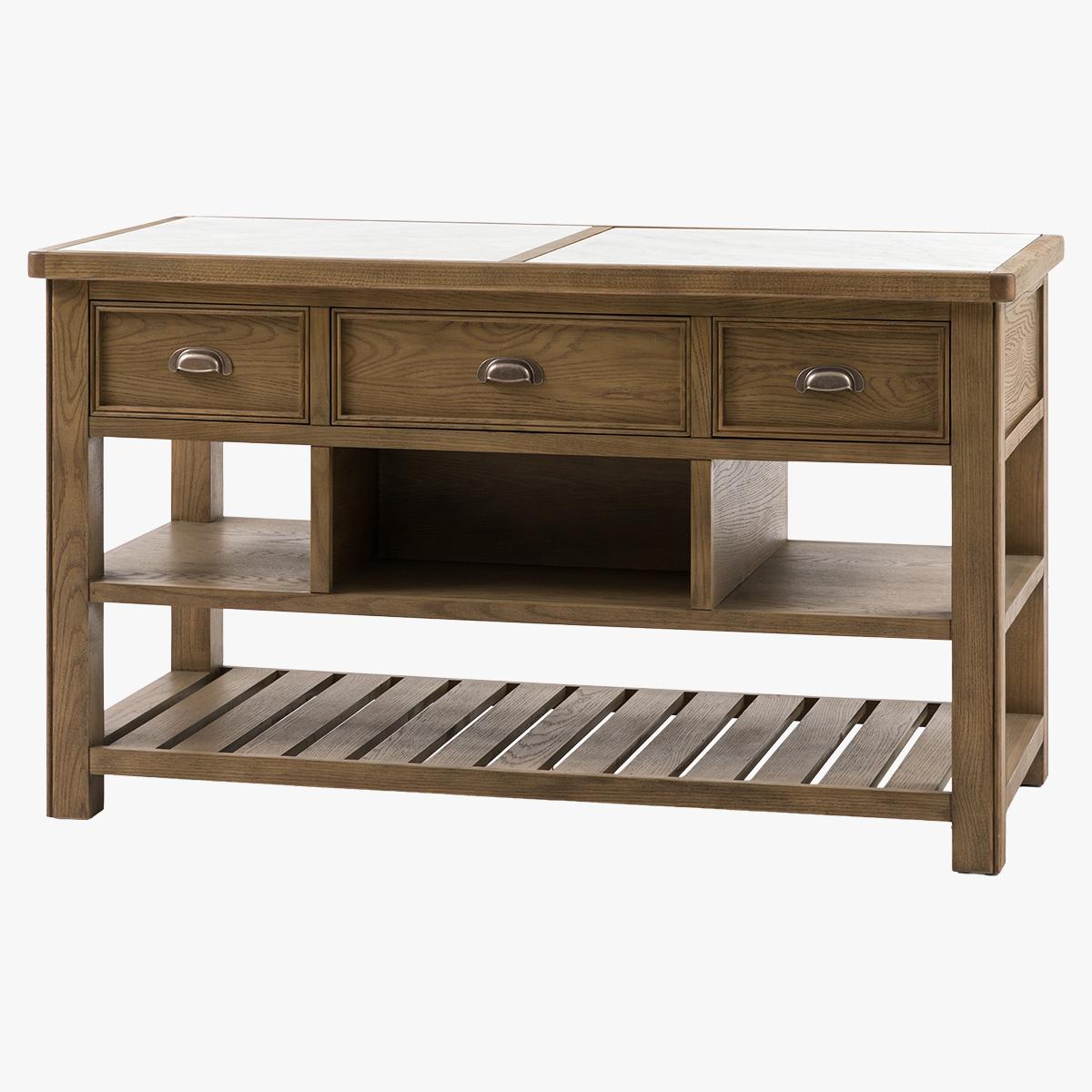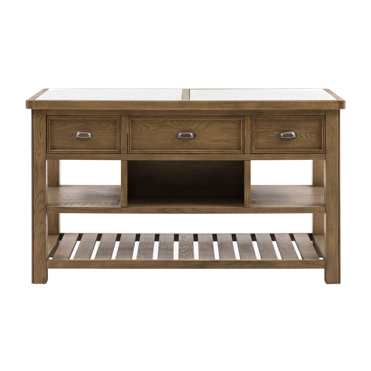 Rooted in rustic charm and built for modern living, the Grain Kitchen Island blends natural texture with everyday function. Crafted from oak and pine wood with beautifully visible grain detailing, this compact yet sturdy piece adds warmth and character to your kitchen space. Featuring a durable marble top and three practical drawers that open from both sides, it offers the perfect balance of style, storage and everyday usability.