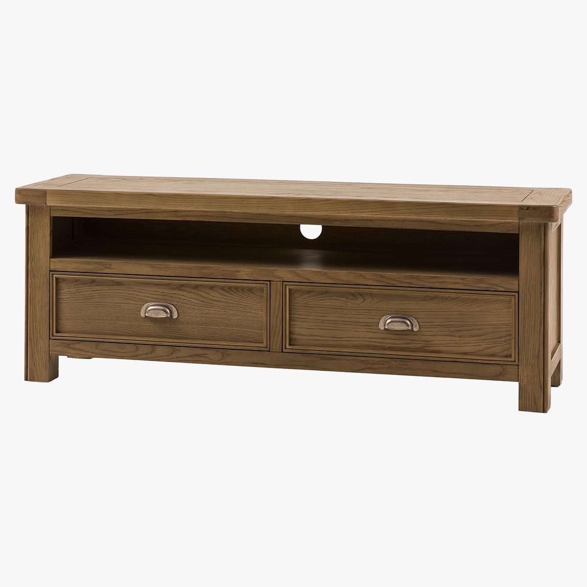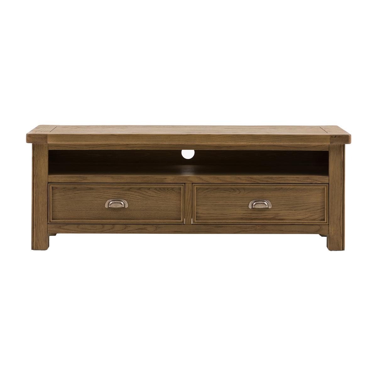 Rooted in rustic charm and built for modern living, the Grain Media Unit blends natural texture with everyday function. Crafted from oak and pine wood with beautifully visible grain detailing, this compact yet sturdy piece adds warmth and character to your space. Featuring a spacious drawer with classic metal handles, it's ideal for keeping your home clutter free whilst the open shelf will store all your devices.
