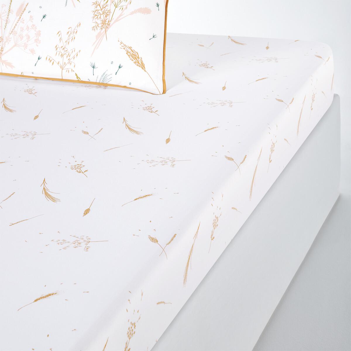 This pure cotton fitted sheet is printed with grass stalks, symbols of renewal. Their graphic and decorative ears add an original note!Cotton is part of our daily lives. We love it for its suppleness and softness. Easy Care, it is ideal for the beds of young and old alike!Product Details • 100% cotton • 144 thread count • Flap height 30cm for thick mattresses • Grass print. Care Advice • Machine washable at 60°C • By washing your laundry at 40°C instead of 60°C, you limit energy consumption. Sizes • 90 x 190cm: Single • 140 x 190cm: Double • 160 x 200cm: King • 180 x 200cm: Super King • OEKO-TEX® Standard 100. Standard 100 certification by OEKO-TEX® tests textile products for harmful substances via an independent, international label.