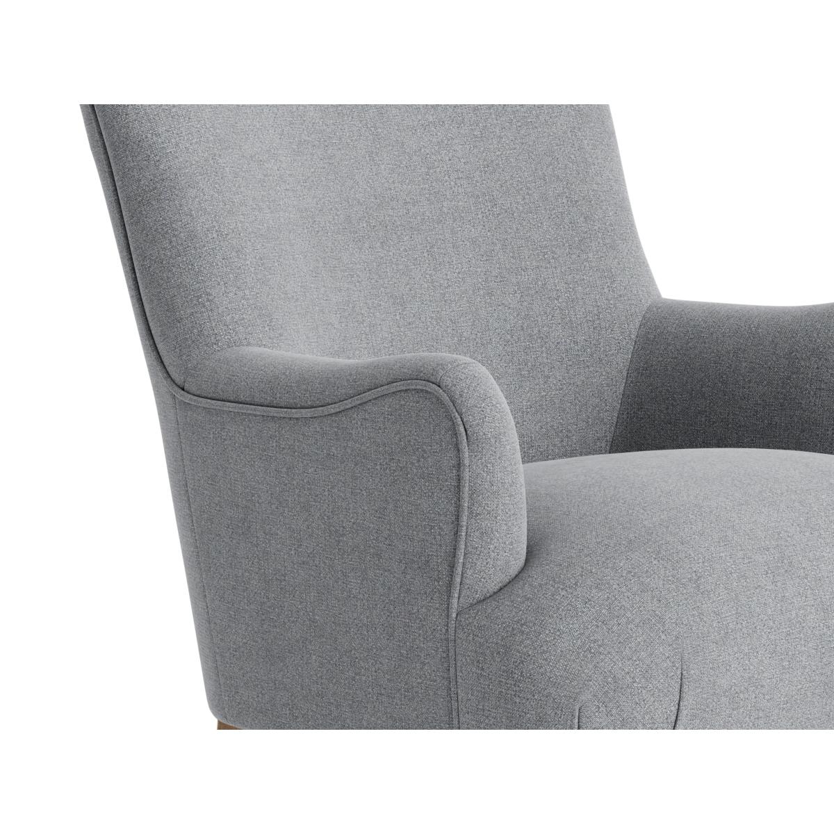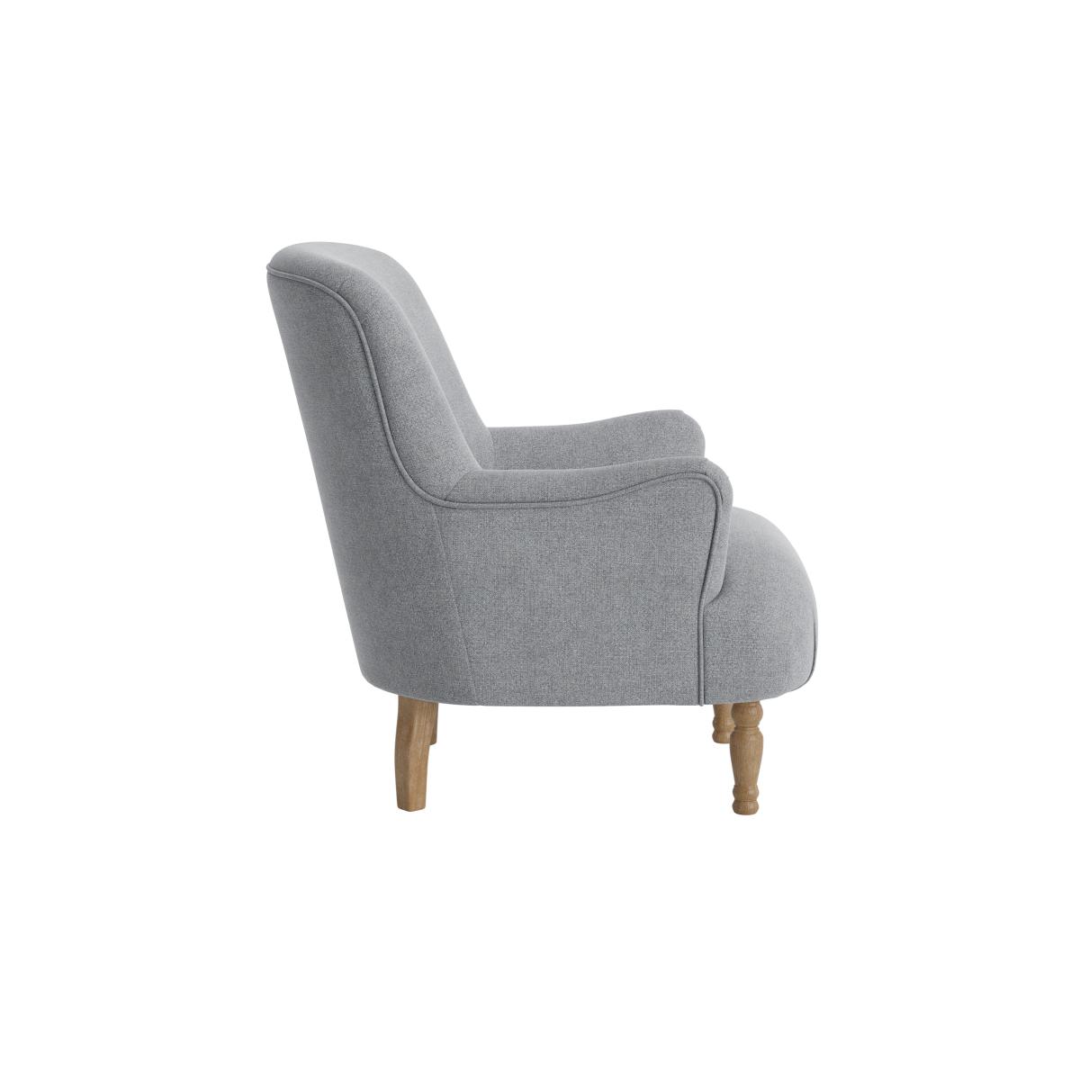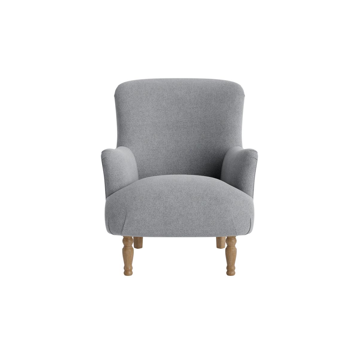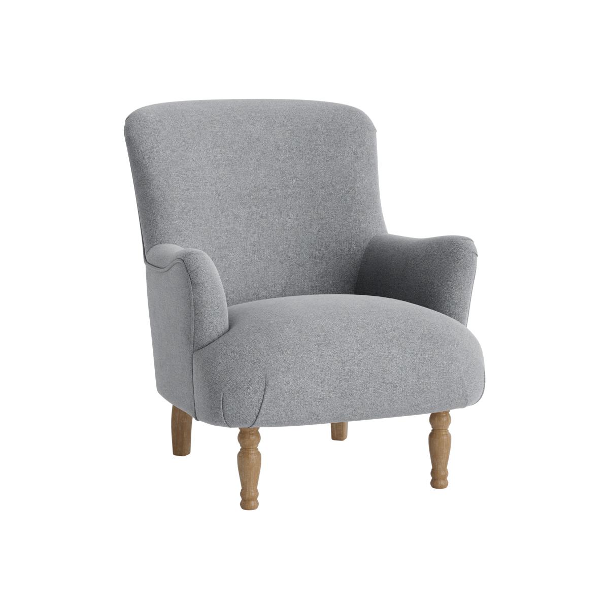 I love this armchair for its classic yet versatile design, making it a great addition to both traditional and contemporary interiors. Its soft, neutral fabric means it effortlessly complements a range of colour schemes, while the slightly curved arms and sturdy wooden legs add a touch of charm and stability. It works well as a cosy reading nook in a living room or as a statement piece in a bedroom corner. For styling tips, pair it with a textured cushion or a small throw to introduce colour and pattern, and consider placing it alongside a side table for practicality. Its size and shape lend themselves well to creating inviting, layered spaces that feel lived-in and comfortable.