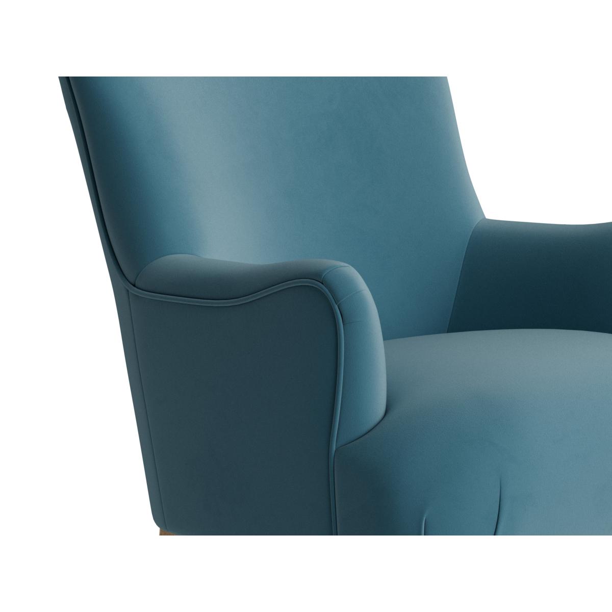 I love this armchair because of its inviting shape and timeless appeal. It works particularly well in cosy corners or as a statement piece in a living room or bedroom. The plush upholstery and sturdy wooden legs give it a vintage vibe with modern versatility, making it suitable for both traditional and contemporary interiors. Practical styling tips include pairing it with a textured throw or a patterned cushion to add visual interest, and placing it alongside a small side table for drinks or books. Its adaptable colour means it can easily complement a variety of colour schemes, making it a versatile addition to any space.