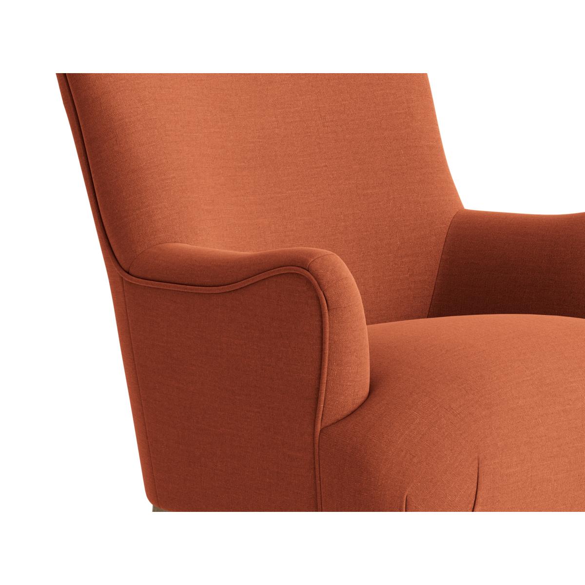I love this armchair’s vintage-inspired design, making it a versatile piece that can add character to both traditional and eclectic interiors. Its warm, muted colour makes it easy to incorporate into a colour palette, whether you’re aiming for cosy neutral tones or a bolder, more vibrant scheme. This chair works well in living rooms, reading nooks, or even as an accent in bedrooms. Practical styling tips include pairing it with a textured throw or a mix of cushions for added comfort, and positioning it alongside a small side table for functional appeal. Its timeless shape and sturdy wooden legs also mean it can be styled with other vintage or contemporary furniture for a curated, lived-in look.