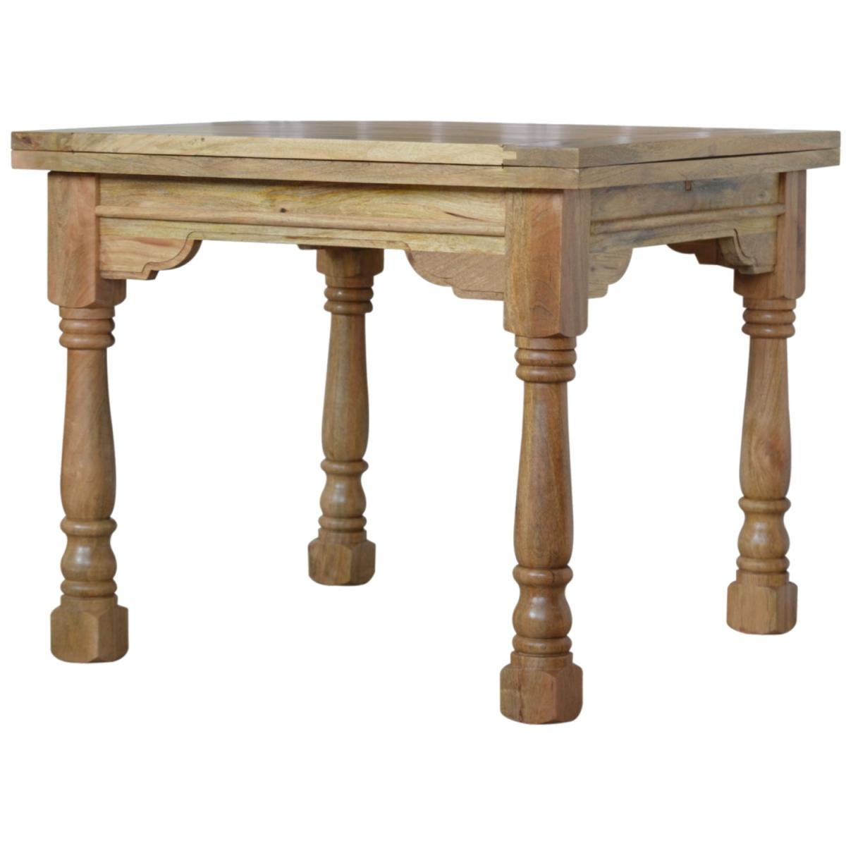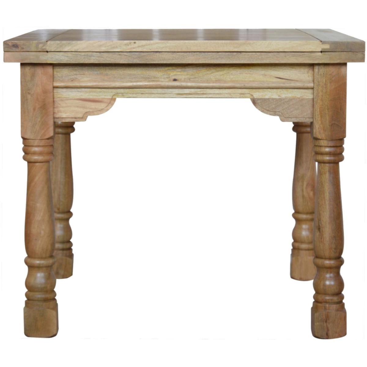 This charming butterfly table is excellent for intimate dinners for two in kitchen-diners or smaller dining rooms, but extends to seat four to six people when needed. This table has a butterfly extension that stores beneath the tabletop and is very easy to use. This piece has been built to last, with a simple functional design and hints of country charm made from 100% solid Mango wood with a fine hand-distressed oak-ish finish.