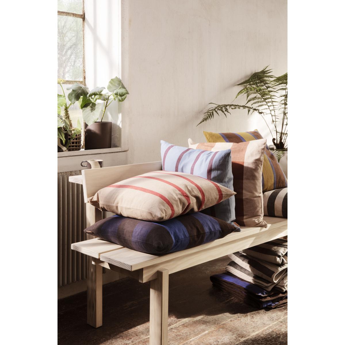 Thin or thick, irregular, two-tone or multi-coloured: stripes give the Grand cushion collection an indelible signature. They involve solid areas of colour in a whirlwind of resounding graphic effects. These cushions are made from an attractive 50% natural linen and 50% cotton blend.