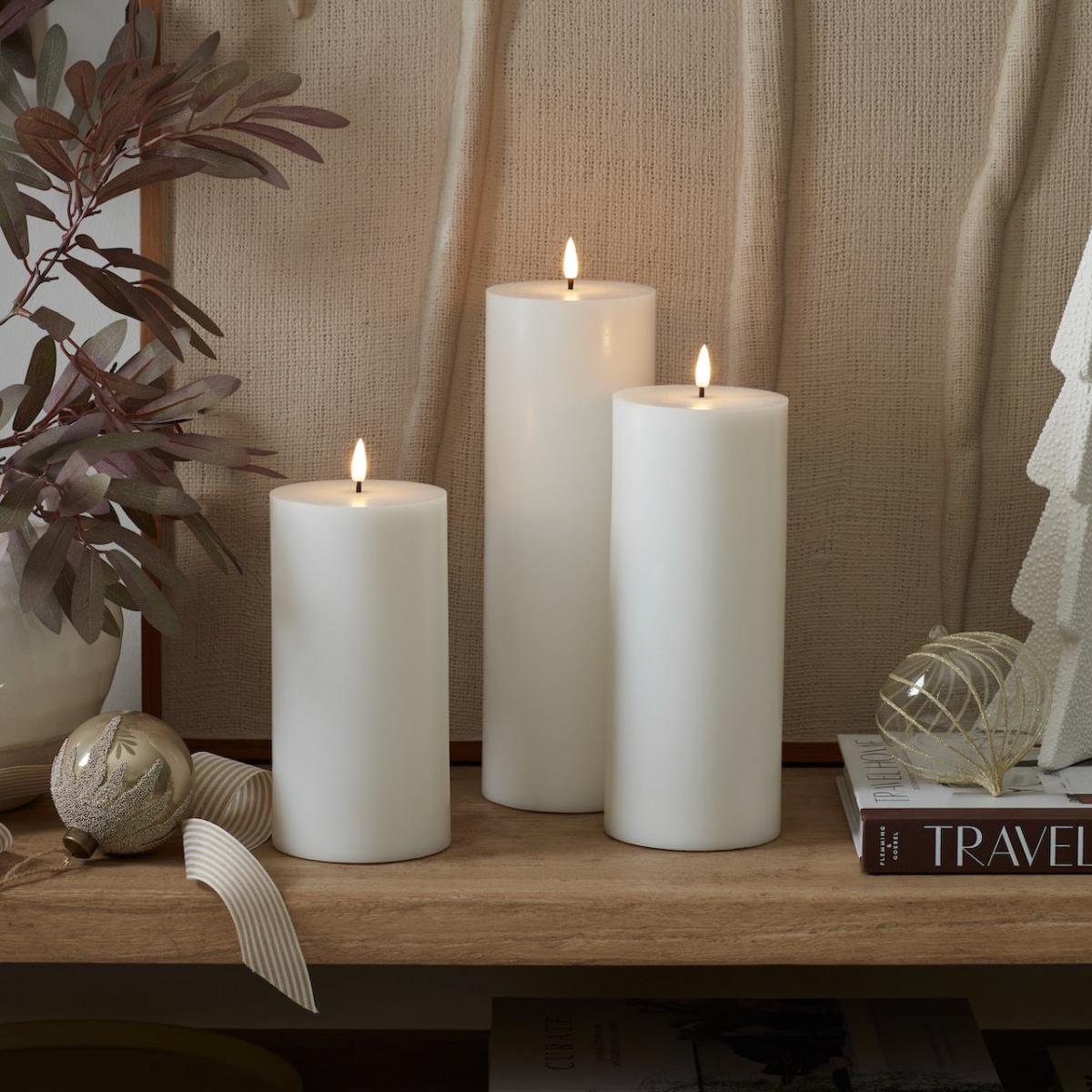 These LED pillars are a great addition to both modern and traditional interiors, offering a minimalist yet sophisticated touch. I love their clean, stately look that works well as a centrepiece on sideboards, mantels, or even as a calming bedside feature. Their flameless design makes them practical-perfect for homes with pets or young children-and they can be left on for hours without any safety concerns. Styling tips include grouping them at varying heights for visual interest, or pairing with natural textures like wood or woven baskets to create a warm, inviting atmosphere. They’re incredibly versatile and can seamlessly complement neutral palettes or add a chic element to more colourful spaces.