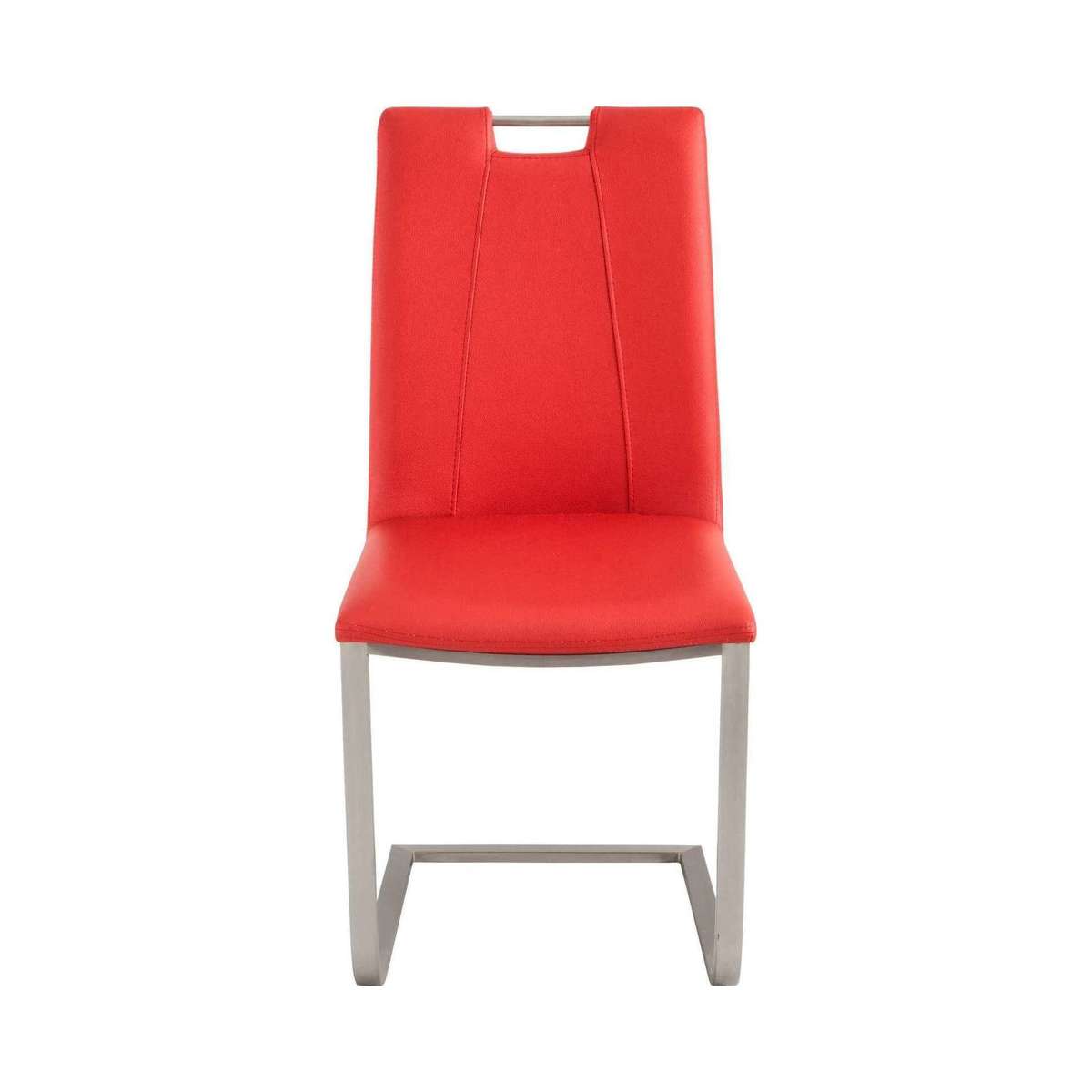 Contemporary and colourful ultra-modern dining chair;Cantilevered, tubular brushed stainless steel legs;Angled seat back for extra comfort;Hard-wearing PVC upholstery in 6 colours;Attractive geometric stitching;Integral metal handle;Uniquely styled for the modern home