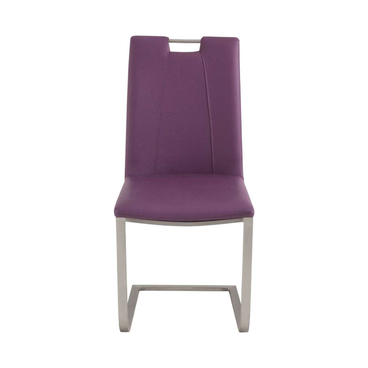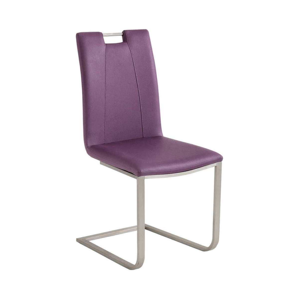 Contemporary and colourful ultra-modern dining chair;Cantilevered, tubular brushed stainless steel legs;Angled seat back for extra comfort;Hard-wearing PVC upholstery in 6 colours;Attractive geometric stitching;Integral metal handle;Uniquely styled for the modern home