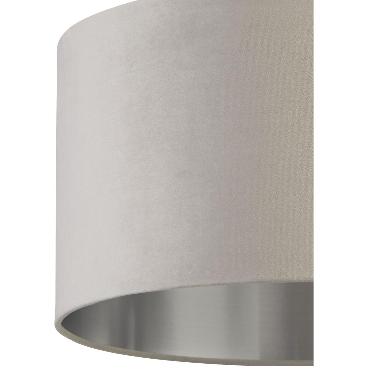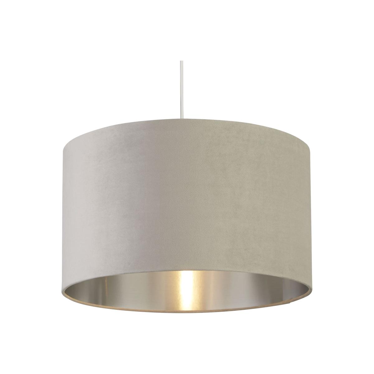 This sophisticated light grey velvet 45cm shade with metallic silver inner is designed to suit a range of interior decor styles. Suitable as a celling or on a lamp base due too its reversible gimble, this shade will elevate any room.