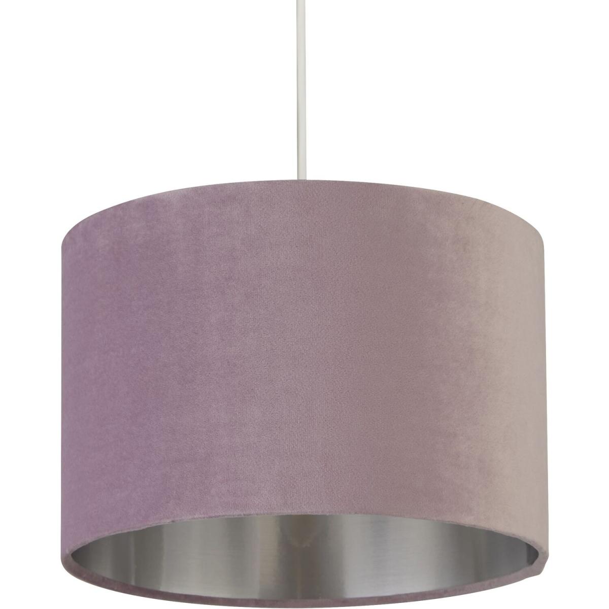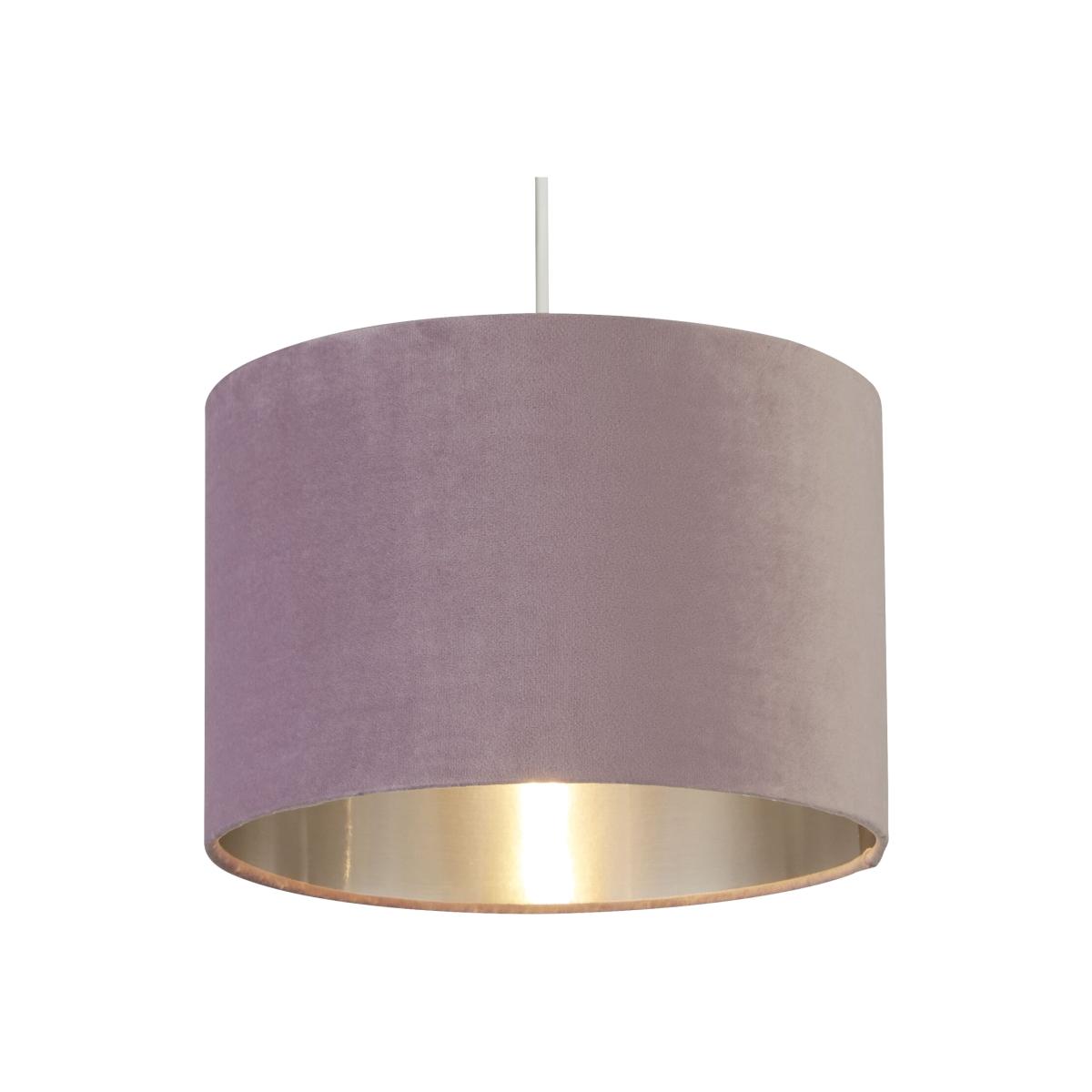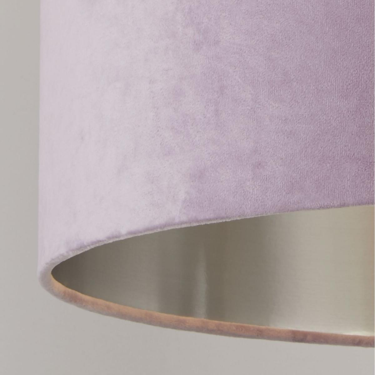 This sophisticated lilac velvet 30cm shade with metallic silver inner is designed to suit a range of interior decor styles. Suitable as a celling or on a lamp base due to its reversible gimble, this shade will elevate any room.