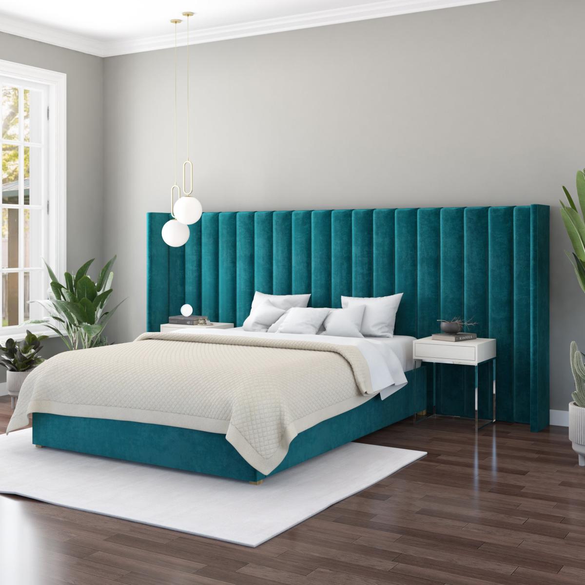 * Freestanding* Oversized design* Plush velvet fabric* Easy to install* Generously padded for maximum comfort* Hand-crafted in Yorkshire Take bedroom Luxury to the next level with our Oversized Freestanding Winged Headboard, a captivating statement piece handcrafted in the UK and designed to exude elegance and grandeur. Crafted with meticulous attention to detail by our skilled artisans, this headboard features an oversized freestanding design with graceful wings, adding a touch of grandeur to your sleeping space. The winged silhouette creates a striking focal point that enhances the overall aesthetic of your bedroom. Indulge in luxurious comfort as you lean back against the generously padded surface of the headboard. Perfect for late-night reading or lounging, the plush padding provides ample support while exuding an air of sophistication. Upholstered in a sumptuous Plush Velvet, available in a range vibrant and captivating colours. Designed to stand alone without the need to be directly affixed to your bed frame, this headboard offers versatility and flexibility in styling your bedroom. Simply place it against the wall behind your bed to instantly elevate the look and feel of your sleeping space. Constructed with the finest materials and superior Yorkshire craftsmanship, our Oversized Free Standing Winged Headboard is built to last. The sturdy frame ensures stability and durability, while the high-quality upholstery maintains its beauty and resilience over time.