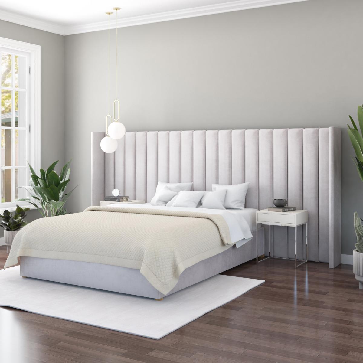 * Freestanding* Oversized design* Plush velvet fabric* Easy to install* Generously padded for maximum comfort* Hand-crafted in Yorkshire Take bedroom Luxury to the next level with our Oversized Freestanding Winged Headboard, a captivating statement piece handcrafted in the UK and designed to exude elegance and grandeur. Crafted with meticulous attention to detail by our skilled artisans, this headboard features an oversized freestanding design with graceful wings, adding a touch of grandeur to your sleeping space. The winged silhouette creates a striking focal point that enhances the overall aesthetic of your bedroom. Indulge in luxurious comfort as you lean back against the generously padded surface of the headboard. Perfect for late-night reading or lounging, the plush padding provides ample support while exuding an air of sophistication. Upholstered in a sumptuous Plush Velvet, available in a range vibrant and captivating colours. Designed to stand alone without the need to be directly affixed to your bed frame, this headboard offers versatility and flexibility in styling your bedroom. Simply place it against the wall behind your bed to instantly elevate the look and feel of your sleeping space. Constructed with the finest materials and superior Yorkshire craftsmanship, our Oversized Free Standing Winged Headboard is built to last. The sturdy frame ensures stability and durability, while the high-quality upholstery maintains its beauty and resilience over time.