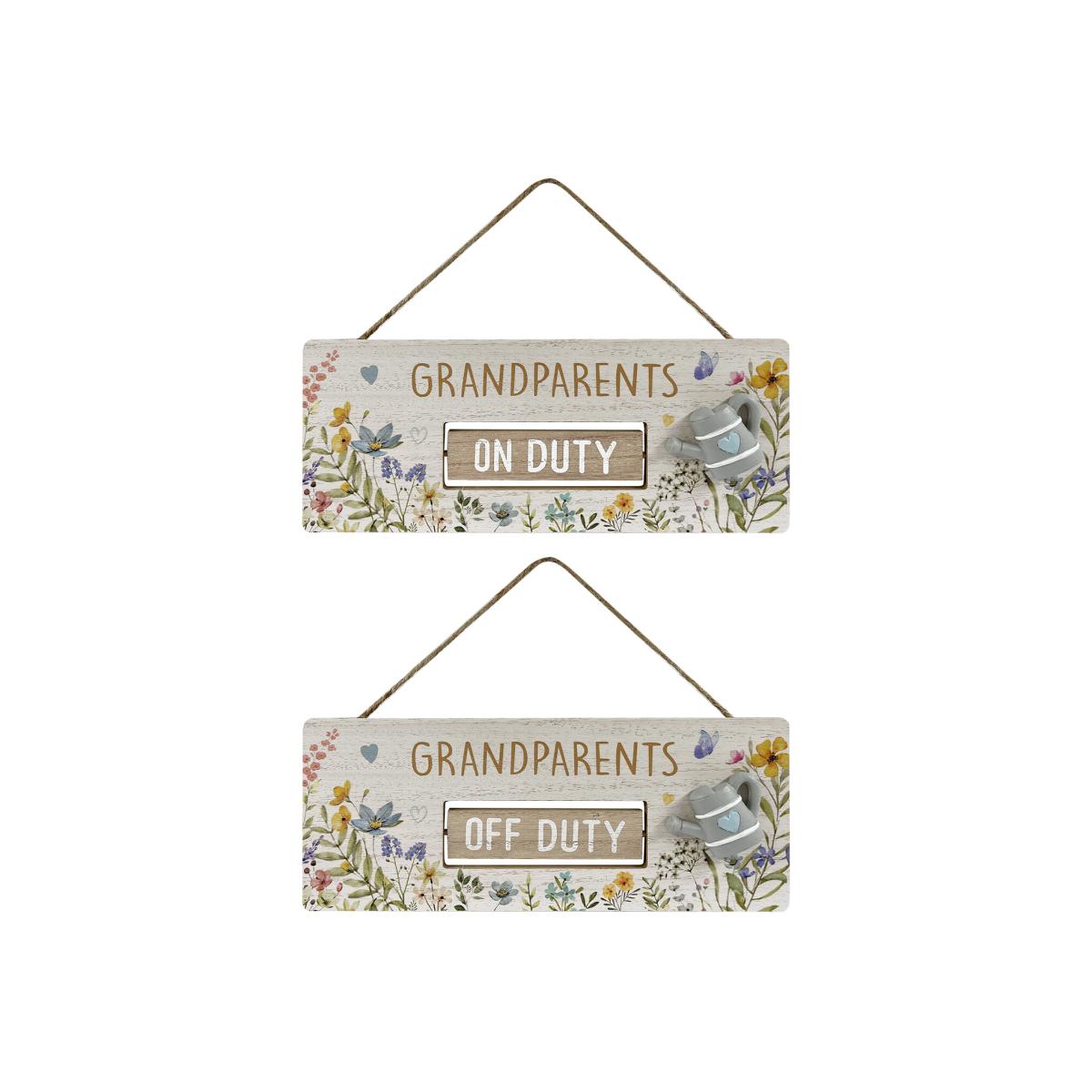 If you are looking for the perfect gift for your loving grandparents, this charming Grandparents Changeable Duty Plaque is the ideal choice. It features a beautiful floral design with a 3D watering can and a changeable block that reads "on duty" and "off duty". This whimsical hanging plaque is perfect for babysitting duty and will look great displayed anywhere in your home.
