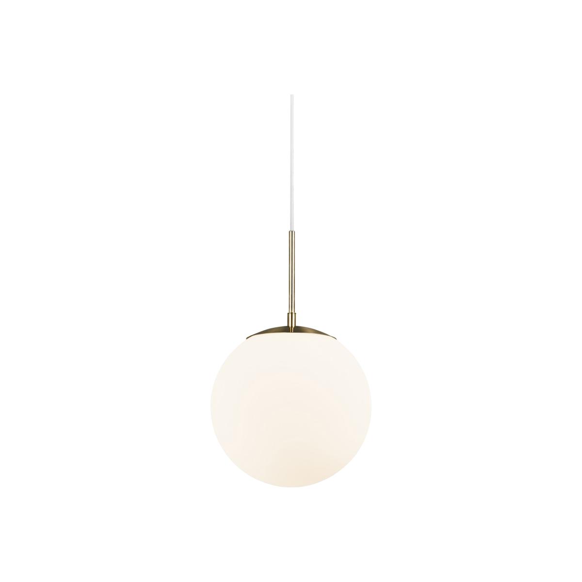 Glamorous modern style. Decorative brass canopy. Provides a soft, diffused light. Matte white opal mouth blown glass, Perfect solo or clustered in a trio, the 25cm Grant Light Brass Globe Ceiling Pendant is an easy way to lend modern style to your decor. Its glamorous globe is crafted in matte white opal mouth-blown glass to provide lovely diffuse light while the decorative brass canopy adds shine.