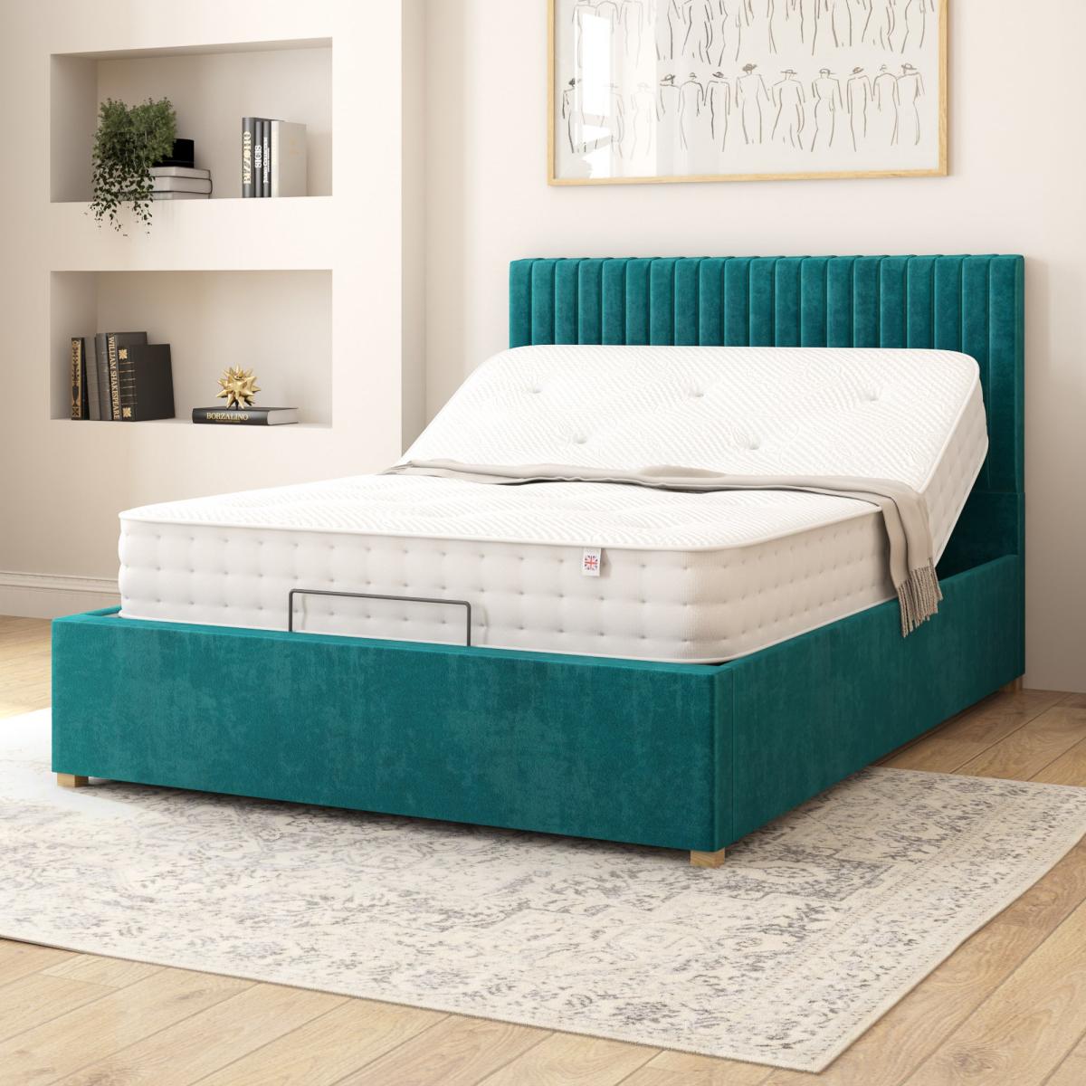 * Electronic Adjustable Bed* Wireless remote control for easy adjustments* Two Programmable memory positions* Available in Single, Double, Kingsize and Super Kingsize* Plush Velvet Upholstered Finish Introducing the Aspire Grant Plush Velvet Electronic Adjustable Bed Frame. Meticulously upholstered by hand in the UK, this fabric bed features a sleek vertical line headboard design, exuding both contemporary elegance and personalized comfort. Designed to cater to your individual needs, this bed frame boasts an advanced 4-part action system with a dual-motor setup. Whether you're adjusting the back, head, legs, or feet, each movement is smooth and seamless, enhancing your overall sleep quality. Operate your bed with ease using the wireless remote control, complete with a torch feature for effortless navigation in low-light conditions. The backlit keypad adds a modern touch and enhances visibility during night-time adjustments. Experience the perfect sleep setup at the touch of a button with two programmable memory positions, allowing you to save your preferred sleeping and relaxing configurations. Assembling your dream bed is simple and straightforward, ensuring that you spend less time setting up and more time enjoying the comfort and convenience of your personalized sleep haven.**Please Note:** A wire framed mattress can not be used on this style of bed. This bed s compatible with any fully foam or pocket-sprung mattress that doesn't have an outer wire frame. The single and double bed sizes use a single platform meaning they take one mattress for the whole bed, while the king and super king sizes feature a split mechanism with independently controllable sides. This means that the king and super king will require two mattresses, one for each side of the bed, to ensure that you and your partner can enjoy personalised comfort without compromise.
