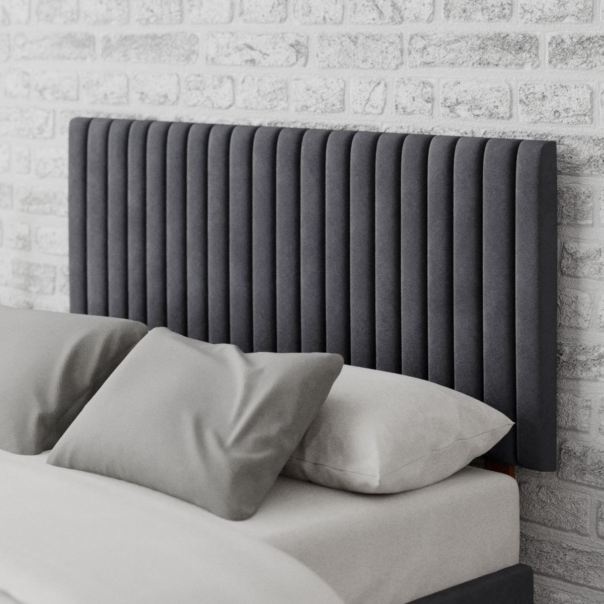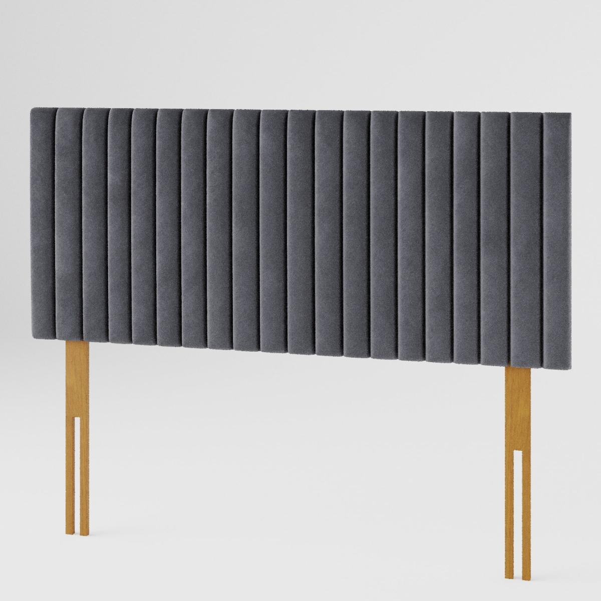 * Plush velvet fabric headboard* Vertical line headboard design* Contemporary Grant range* Hand upholstered with deep padding* Solid mahogany struts* 60cm headboard panel height* 40mm deep polyester padding* Compatible with standard size UK bed bases and divans* Manufactured in the UK If you’re looking to make a stylish enhancement in your bedroom, the luxurious look of this headboard from the Grant range can add plush texture to your bedroom décor and comfort to your bed. Bringing a premium look and understated design, this headboard is hand upholstered in a plush velvet fabric with a modern vertical stripe design and deep padding for added comfort. Handcrafted with a 15mm thick panel and with solid mahogany struts ensure your headboard is sturdy and long lasting for years to come and the deep polyester padding will add a comfortable and supported surface. Available from single to super king sizes, this headboard is suitable for all standard bed bases making it a convenient and simple upgrade to your existing bed frame and a range of stylish colours make it a versatile choice for various bedroom aesthetics.