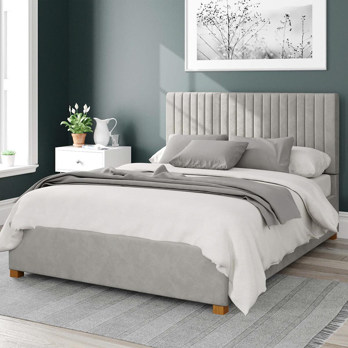 Grant Plush Velvet Storage Ottoman Bed with Vertical Upholstered Headboard