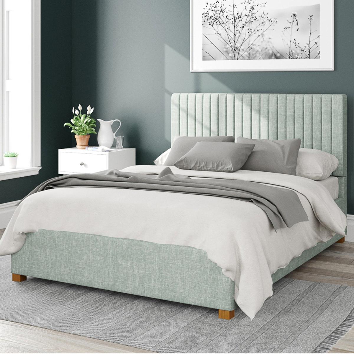 * Cotton fabric ottoman bed* Vertical line headboard design* Contemporary Grant range* Hand upholstered with deep padding* Large storage area with fabric dust protection sheet* Hands free access to storage (mattresses up to 60kg) – mattress not included* Solid hardwood feet* Manufactured in the UK If you’re looking for a way to easily clear the clutter in your bedroom or maximise storage in a small space, this contemporary style ottoman bed from the Grant range offers a comfortable sleep, stylish looks and functionality too! Designed with a statement vertical headboard design and hand upholstered in cotton fabric in a range of calm pastel colours, a deep padding is included for added comfort. Featuring quality spring slats that provide support for a peaceful night's sleep and a large storage area designed to provide ample space for all your bedding and accessories, the ottoman design can be easily accessed with gas lift pistons, so once the mechanism is open it will hold in place and a fabric dust protection sheet is there to keep your belongings clean and tidy. Manufactured in the UK, the bed comes complete with solid hard wood feet to provide a stable foundation that finish the look and ensure the bed remains sturdy and secure, while also adding a touch of style to the overall design.