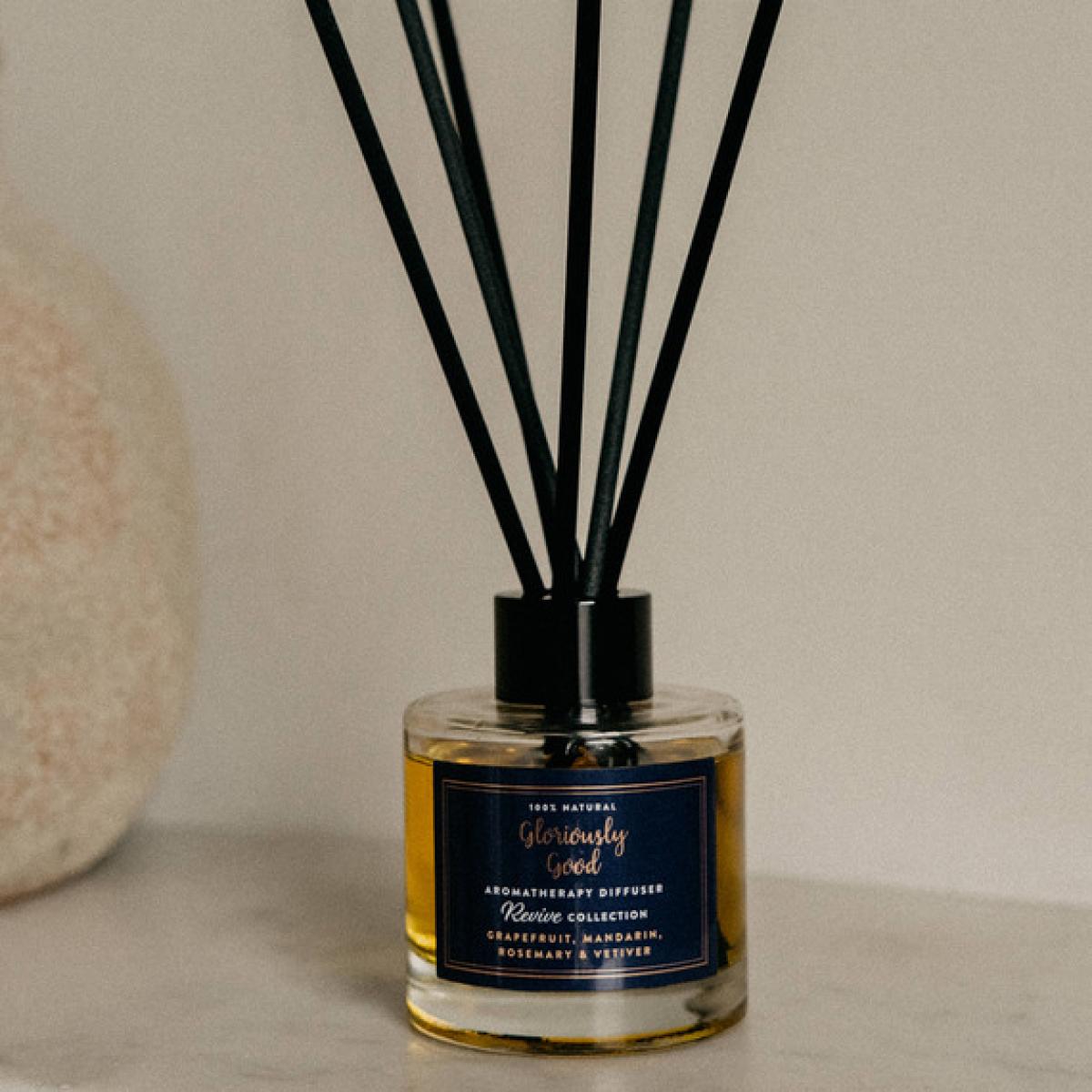 Freshen up your home or workspace with this Revive aromatherapy diffuser. Combining the uplifting scent of freshly squeezed grapefruits and juicy mandarins, with the woody aromas of freshly pressed rosemary and vetiver, the aromatherapy of this diffuser will awaken your senses, lift your spirits up and energise your soul. The perfect way to enliven your surroundings and invigorate your mind, so you can feel more content and productive. Take a moment to breathe in its delightful fragrance - blissfully energising and wonderfully restorative. Instantly feel invigorated, awaken and uplifted.