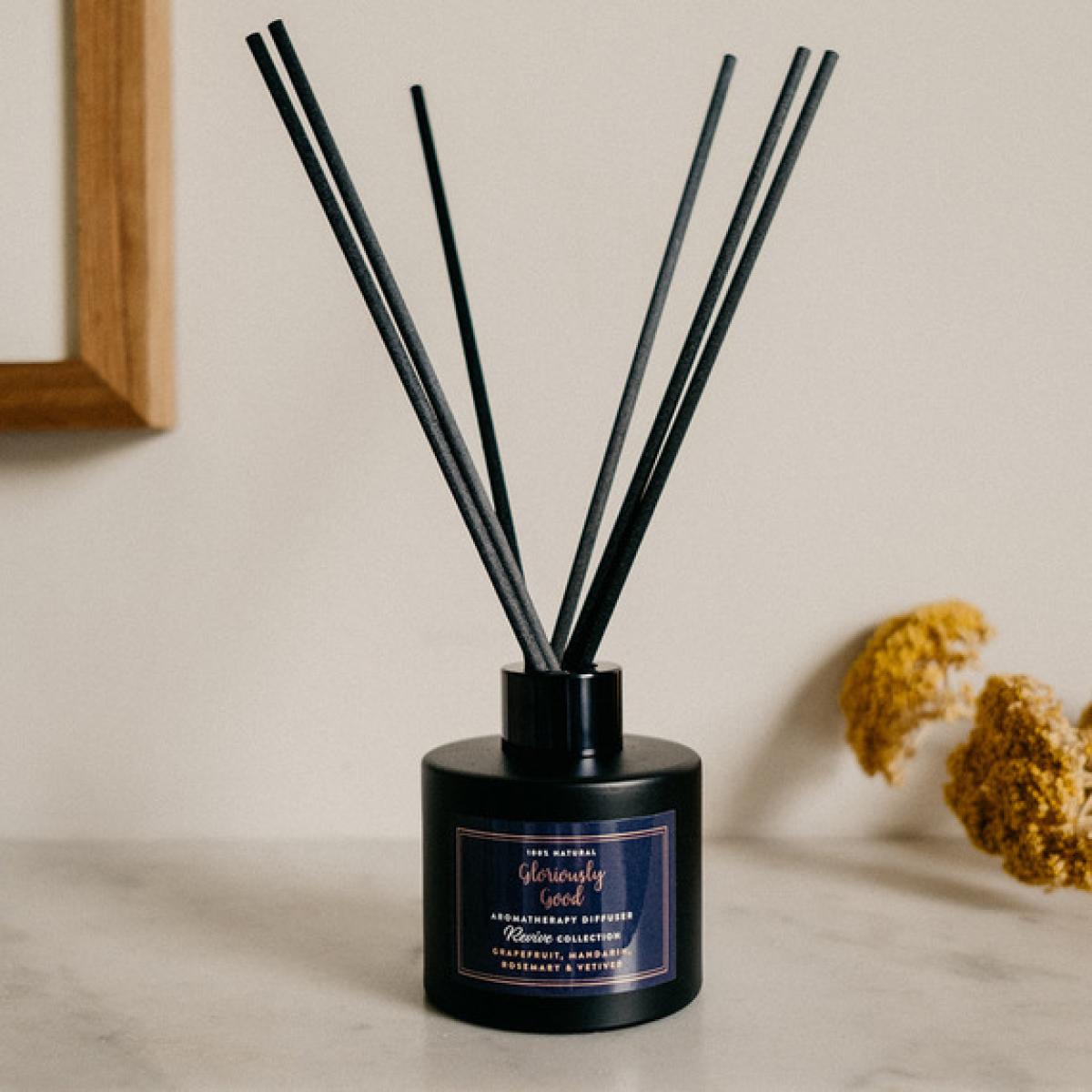 Scent your home and add a touch of luxury with this satin black reed diffuser in a reviving scent which blends 4 essential oils (Grapefruit, Mandarin, Rosemary & Vetiver) for the ultimate sensorial indulgence. The uplifting scent of juicy Grapefruits and Mandarins combined with the grounding aroma of freshly pressed Rosemary meets the woody scent of dried Vetiver to charm your mind and seduce your senses. Take a moment to breathe in its delightful fragrance - blissfully energising and wonderfully restorative. Instantly feel invigorated, awaken and uplifted. Enjoy having your heart content with a deep sense of joy and gratitude.