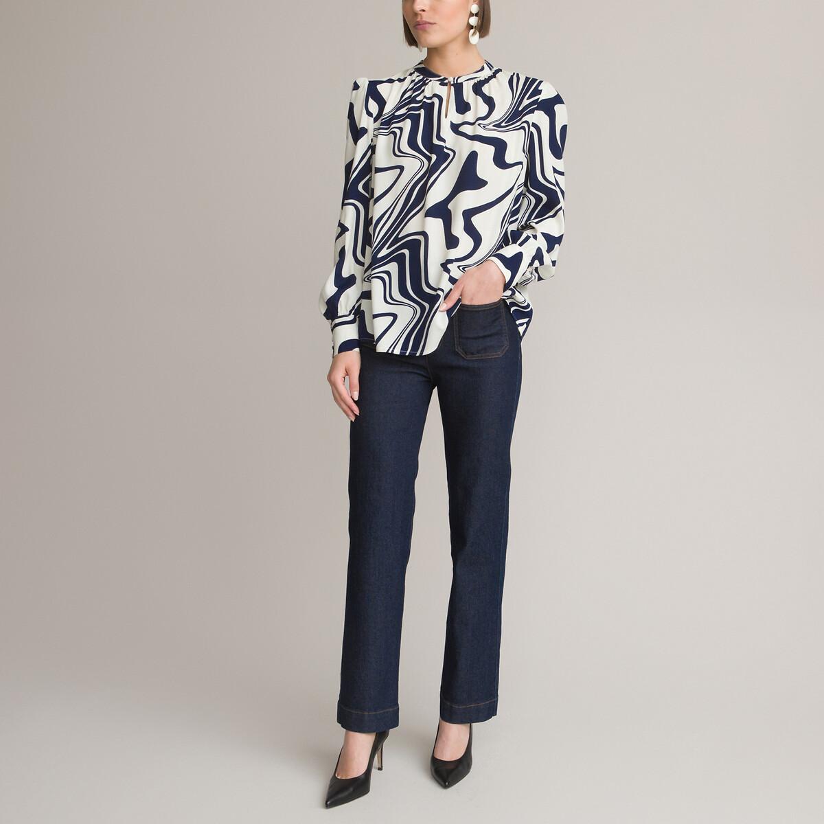 Graphic Print Blouse with Crew Neck and Long Sleeves
