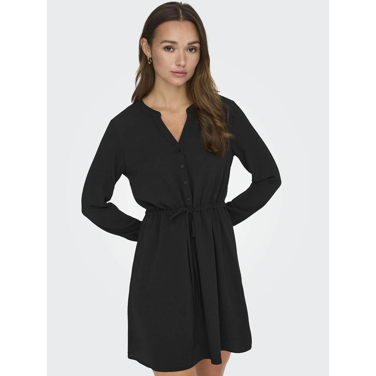 Product details • Mini dress • Style: shift • Mini • Long sleeves • V-neck • Tie at the waist • Front button fastening • Graphic print Fabric content and care advice • 97% polyester, 3% elastane • Please refer to the care instructions on the product label