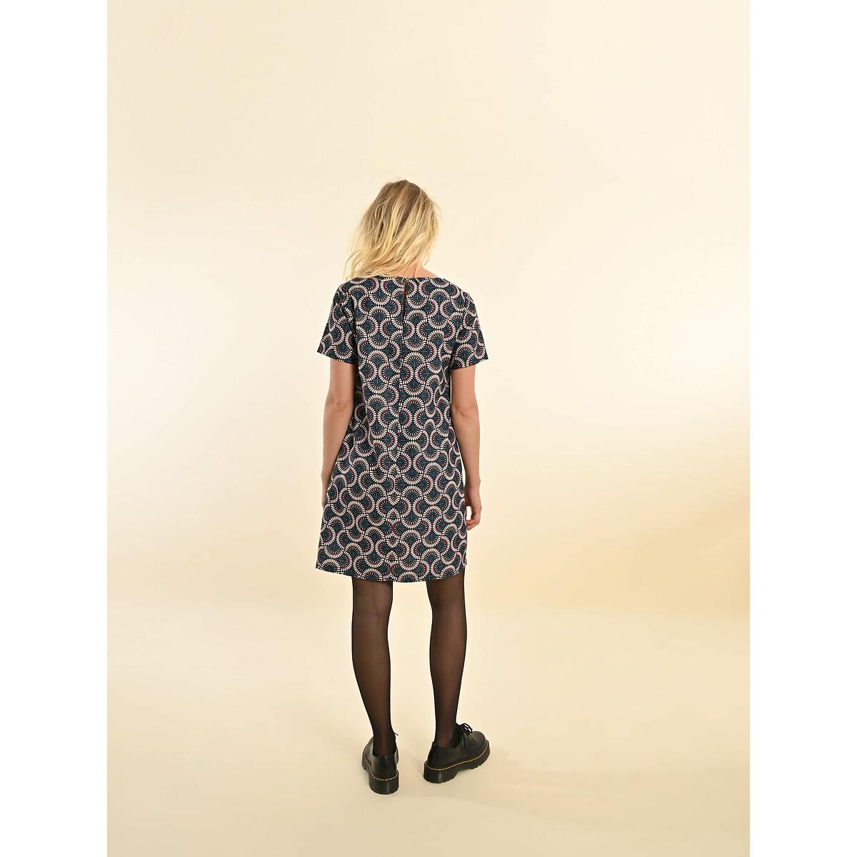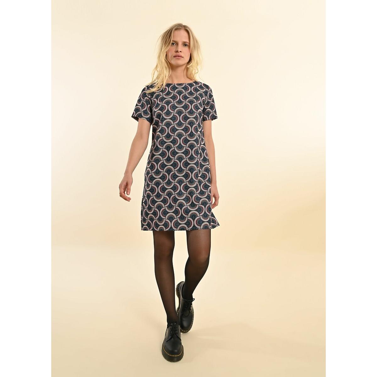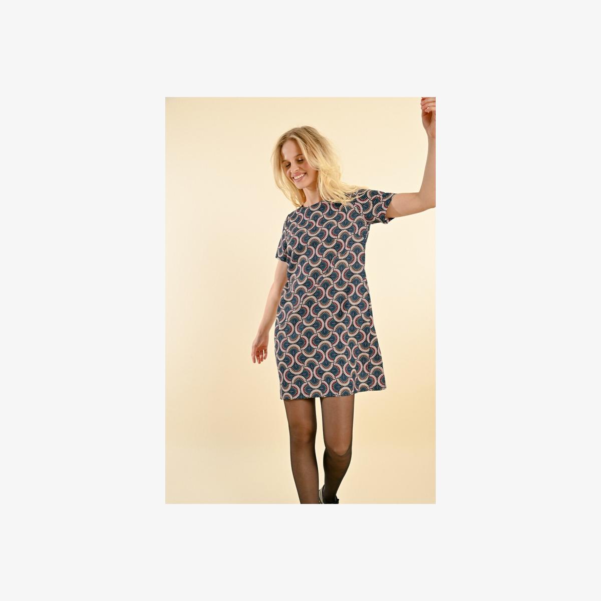 Product details • Style: shift • Mini • Short sleeves • Crew neck • Graphic print • Buttoned keyhole fastening at the back • Length from shoulder 90cm (for size S)Fabric content and care advice • 100% polyester • Please refer to the care instructions on the product label
