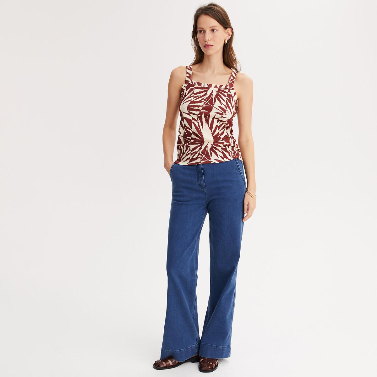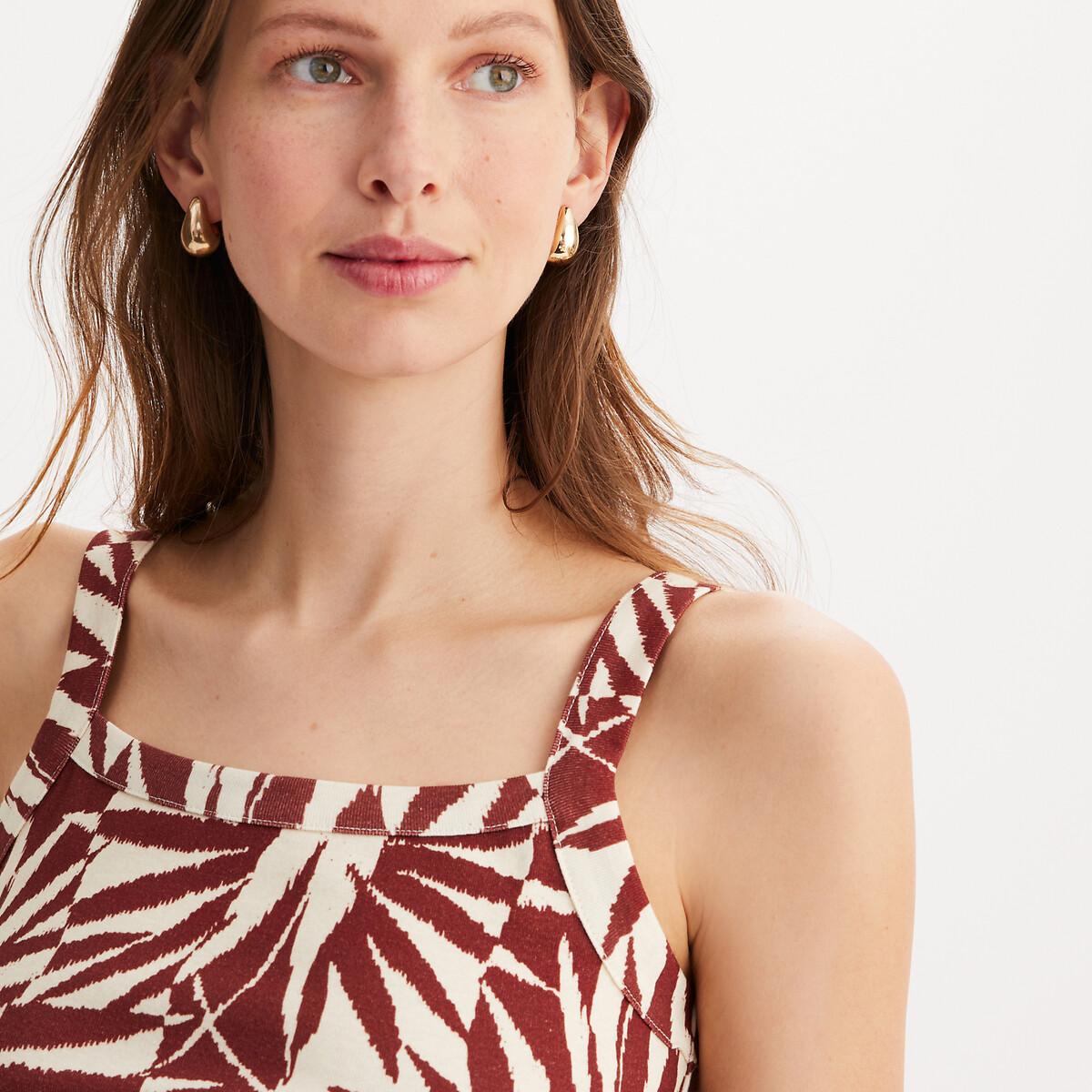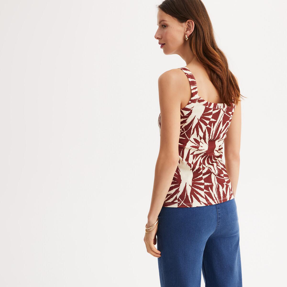 Choose this graphic print vest, revisited with a square neckline and wide straps. This top will see you through the summer, whether you're heading into town or off to the beach. Product details • Sleeveless • Square neck • Graphic print • Long. 56cm. Fabric content and care advice • 100% cotton • Please refer to the care instructions on the product label • Made in Europe.