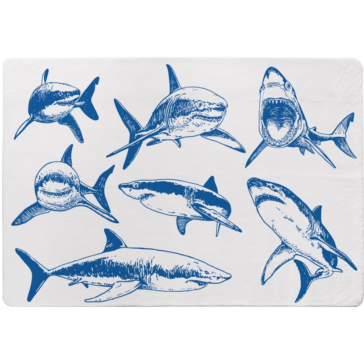 Graphical Set Of Blue Sharks Isolated On White Background Designer Rug - Blue / 200cm