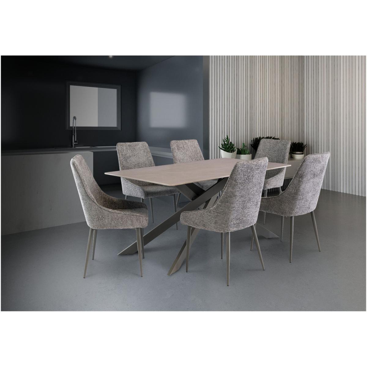 The art of sophistication. A contemporary cushioned chair designed to bring boutique living to the masses. Lovingly tailored in a grey textured fabric with piping and finished with grey powder-coated legs. They are delivered flat-packed with required assembly.