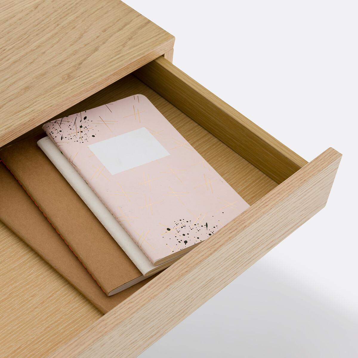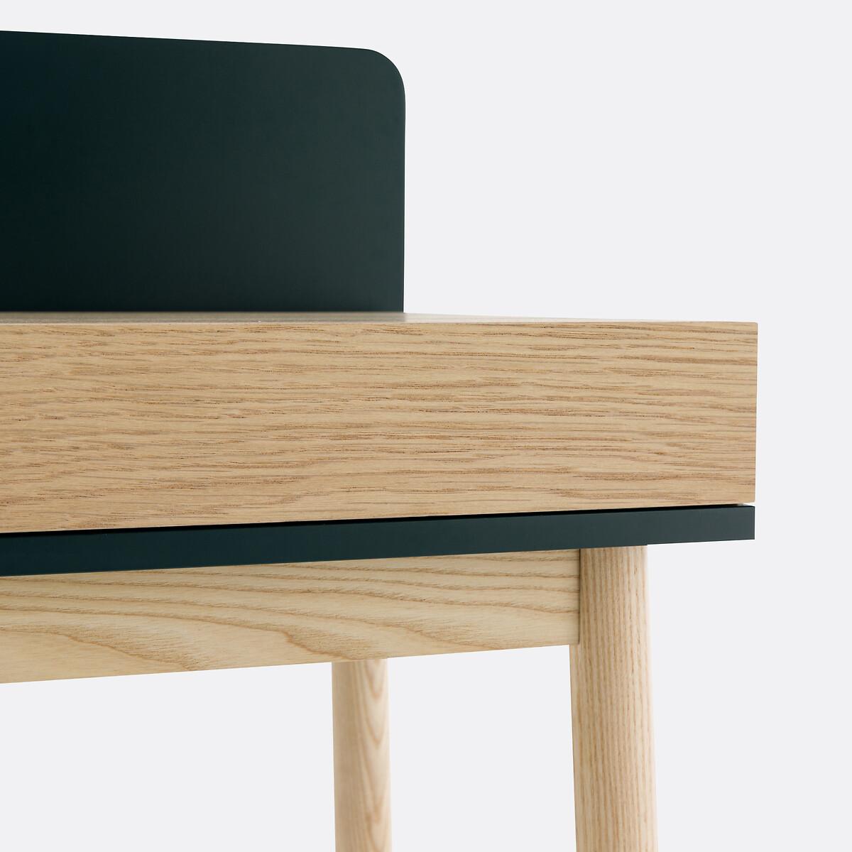 The well-crafted Graphy desk is part of our Les Ingénieux collection. Creations full of ideas to make life simpler and everyday life more beautiful. A structured graphic silhouette with a contemporary style: here is the well-worked Graphy desk. So you can have an office area even without dedicated space. Why you'll love this product • Its wall back allows you to create a small workspace, conducive to concentration • Its large drawer is very practical for storing all your small office equipment • Reversible, the wall can be positioned on the left or right depending on the location of the desk in your interior. Product Details • 1 drawer unit in oak veneered MDF • Surround in lacquered MDF • Solid ash legs • Acrylic finish • ReversibleDimensions. Total: • Length: 90cm • Height: 94cm • Depth: 47cm • Weight: 20kg. Usable dimensions: • Drawer: L70 x D38.7 x H5.3cm • WOOD FROM SUSTAINABLY MANAGED FORESTS. FSC® certified wood comes from forests that are environmentally, socially and economically well managed. Dimensions and weight of parcel1 parcel • L100 x H16 x D58cm. 22.8kg