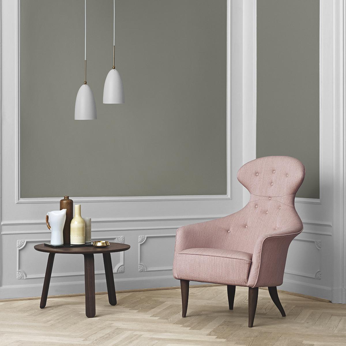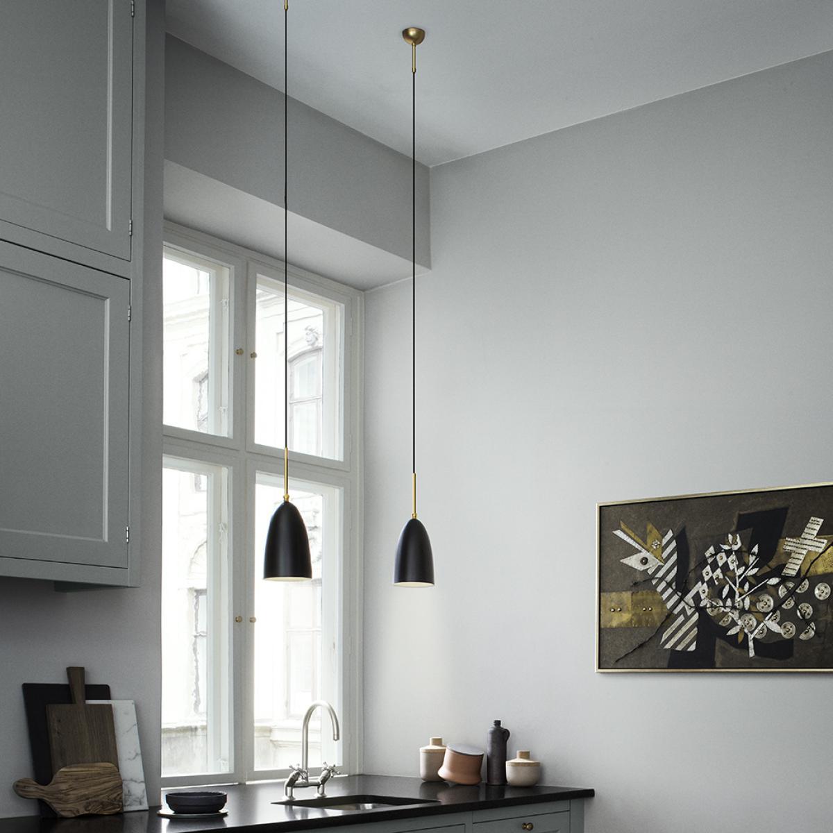 The unmistakable silhouette of Gretta Grossman's Gräshoppa Pendant Light for Gubi is informed by her 1947 Floor Lamp design. A staple of mid-20th-century design, the unique form of the Gräshoppa resembles its namesake insect; in this iteration, Gubi presents an intricately crafted powder-coated steel shade, descending from a brass-plated steel canopy and a solid brass swivel. Created over seven decades ago by the Swedish-born and California-based designer, the light is heavily influenced by European modernism. Inspired by designers such as Ludwig Mies van der Rohe and Walter Gropius, Grossman herself was a pioneer in shaping the aesthetic of mid-century North American modernism. Requires: 1x max. 6W E14 LED bulb (not included).