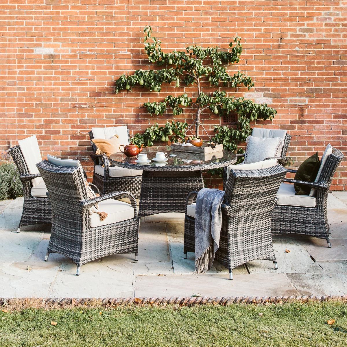 I love the Grasmere six-seater because it's a versatile piece that works well in both classic and contemporary gardens. Its rattan finish adds a relaxed, natural feel that suits outdoor spaces, while the neutral cushions keep it looking fresh and inviting. Styling-wise, it pairs beautifully with mineral or earthy tones, and adding textured cushions or throws can elevate the look for more formal gatherings. Practical tips include positioning it under a pergola or next to planters to create an inviting outdoor dining corner, and layering with outdoor rugs and lanterns to define the space and make it feel like an extension of your indoor style.