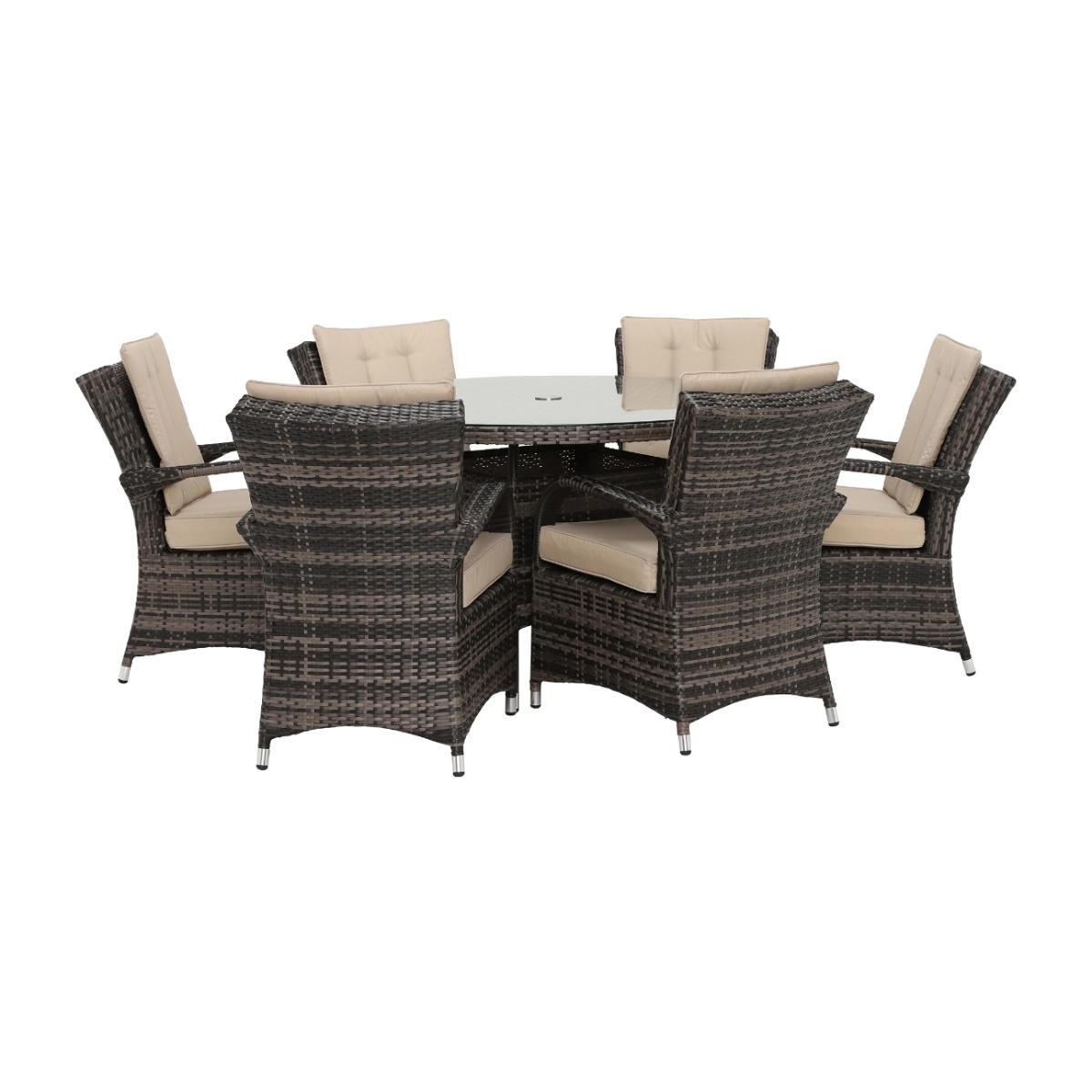 Grasmere 6 Seat Round Garden Set in Brown Weave and Beige Fabric Grasmere 6 Seat Round Garden Dining Set in Brown Weave and Beige Fabric Grasmere 6 Seat Round Garden Set, Brown | Barker & Stonehouse