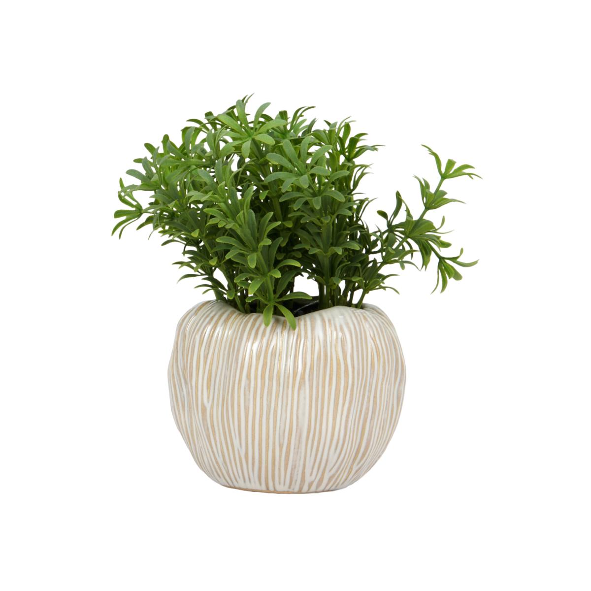 The Grass in Reactive Glaze Pot is a stunning addition to any home, adding a touch of nature into your space without all the troublesome upkeep! The ceramic pot is crafted with neutral tones in a striped design and is finished with green artificial foliage for a pop of natural colour. This will look lovely sitting on accent tables, shelves, and mantelpieces.