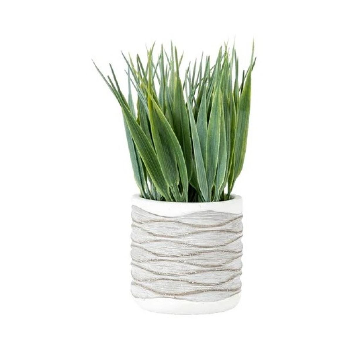 The Grass in Wavy Pot Small 2 Pack in grey & white wavy patterned cement stone pots, the set of 2 vibrant green faux grasses will add a bit of greenery and life to your room. Indoor Use Only Colour - White/Grey Material - Cement Dimensions; (H)22cm x (W)8cm x (D)8cm  Pot Diameter 7cm Please note: Lifestyle images are for illustrative purposes