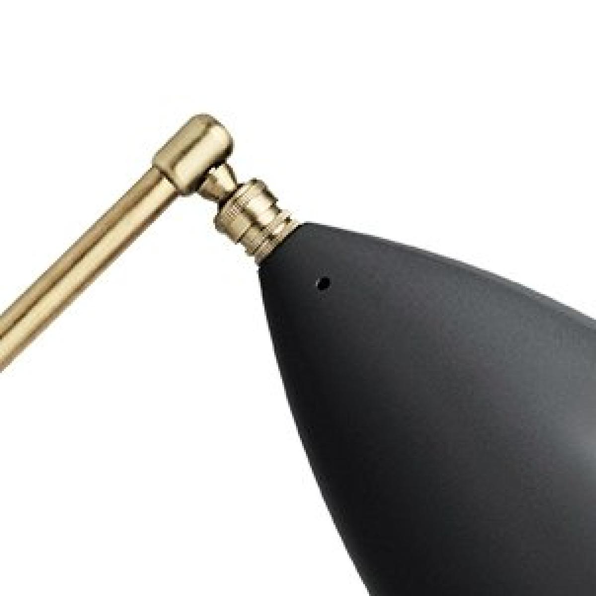 The Grasshopper table lamp in black offers a sleek, modern aesthetic that works particularly well in contemporary and minimalist interiors. I love its streamlined design and striking contrast between the black shade and brass accents, which add a touch of sophistication. It's versatile enough to sit on a desk or side table, providing focused task lighting without overwhelming the space. For styling tips, consider pairing it with neutral-toned furniture or eclectic decor to make it stand out, and position it near seating areas that require adjustable lighting for reading or working. Its clean silhouette makes it a practical yet stylish addition to both home offices and living areas.